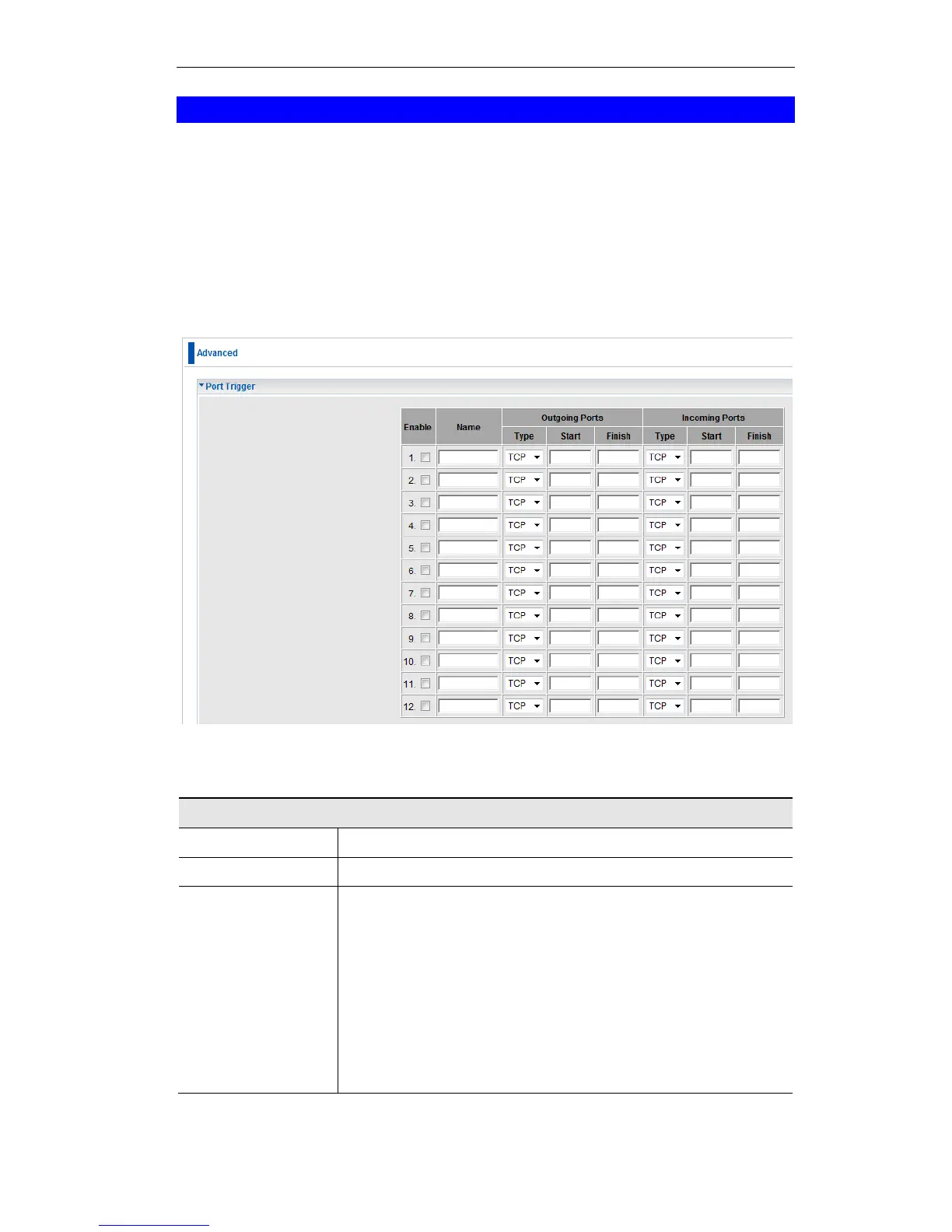 The Port Trigger screen can be reached by clicking the Port Trigger on the screen.