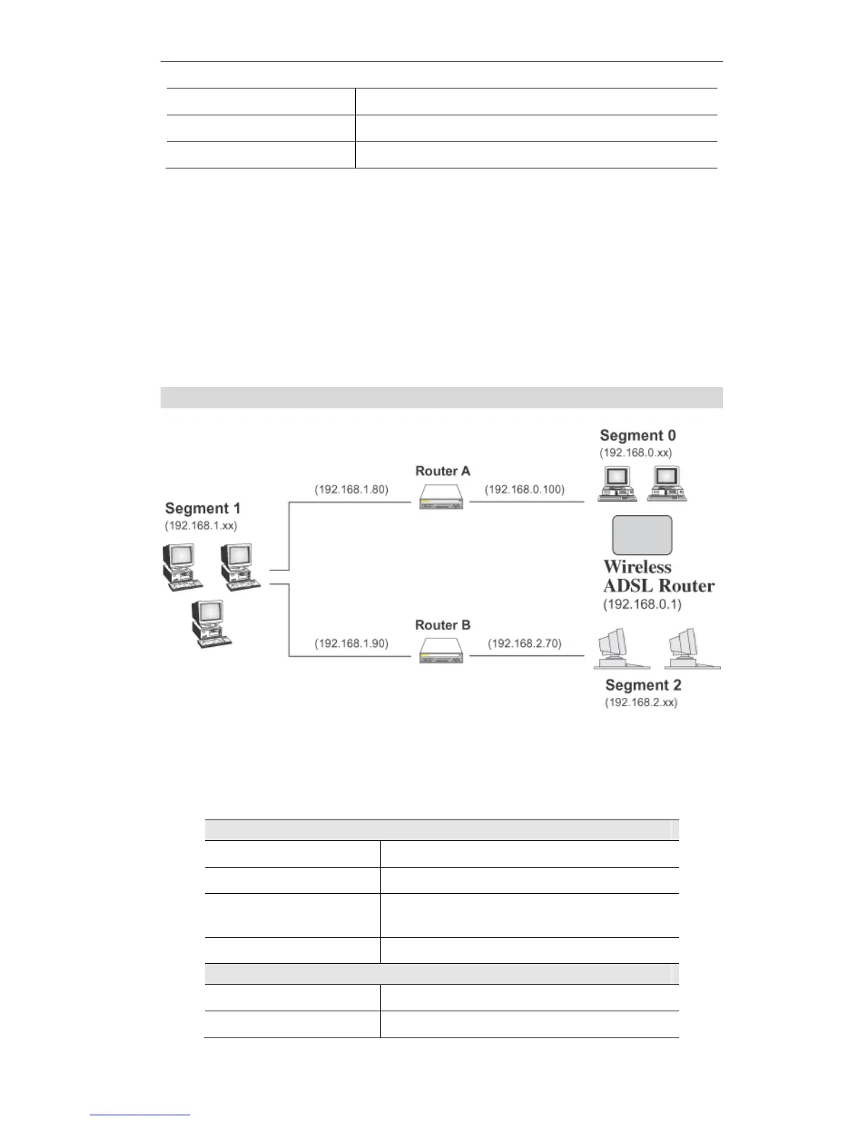 For the LAN shown above, with 2 routers and 3 LAN segments, the Wireless ADSL Router