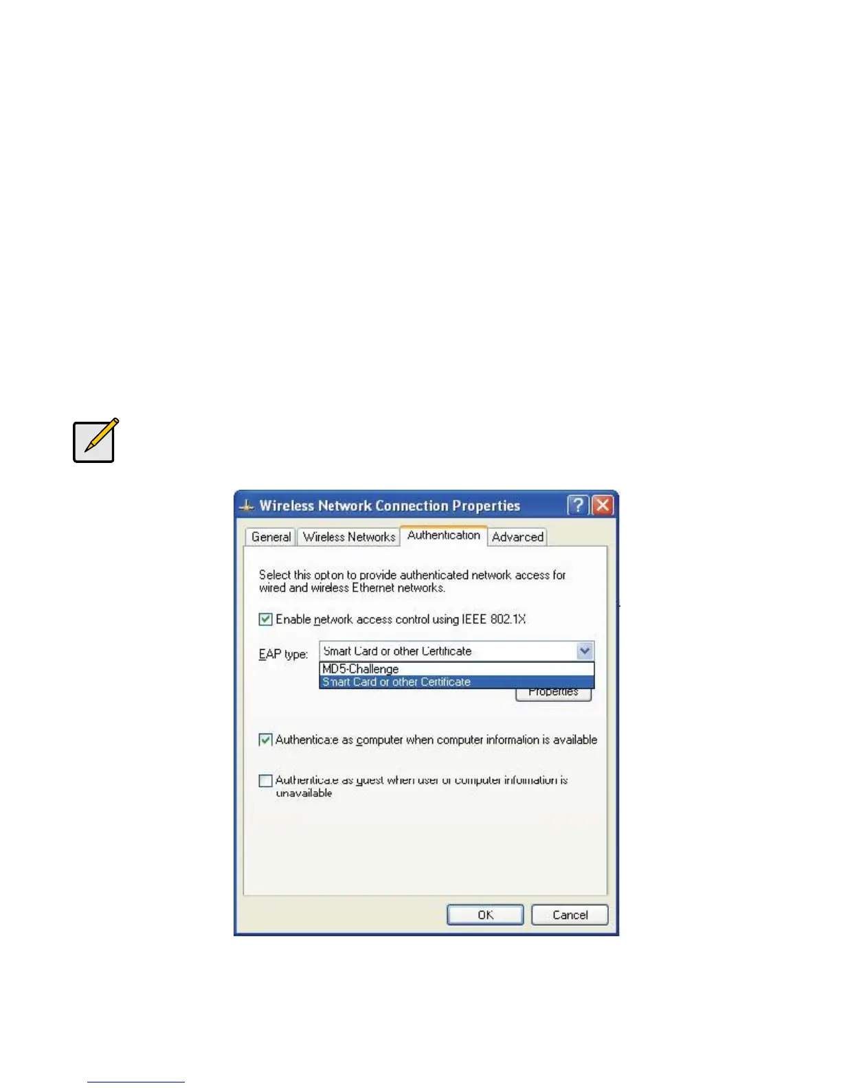 2. Choose MD5-Challenge or Smart Card or other Certificate as the EAP type.