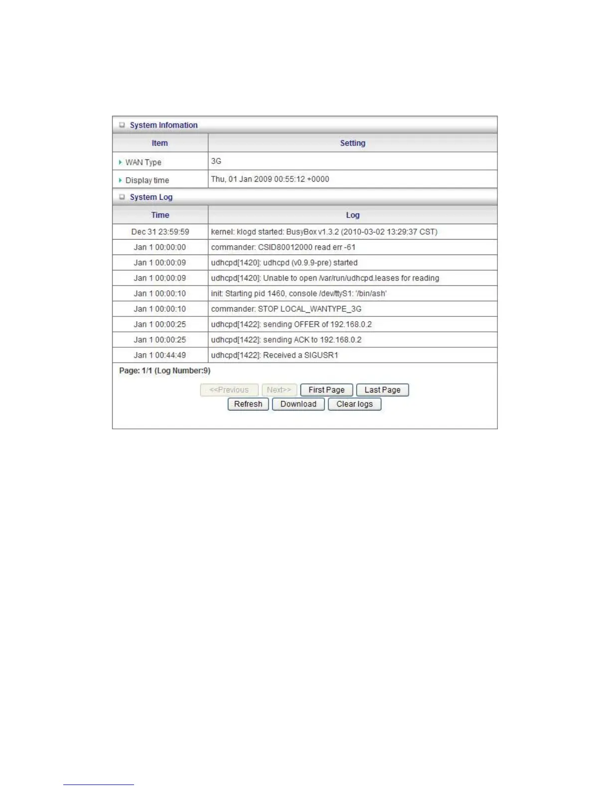 LevelOne WBR-6801 - System Information and Log Management; System Log Management