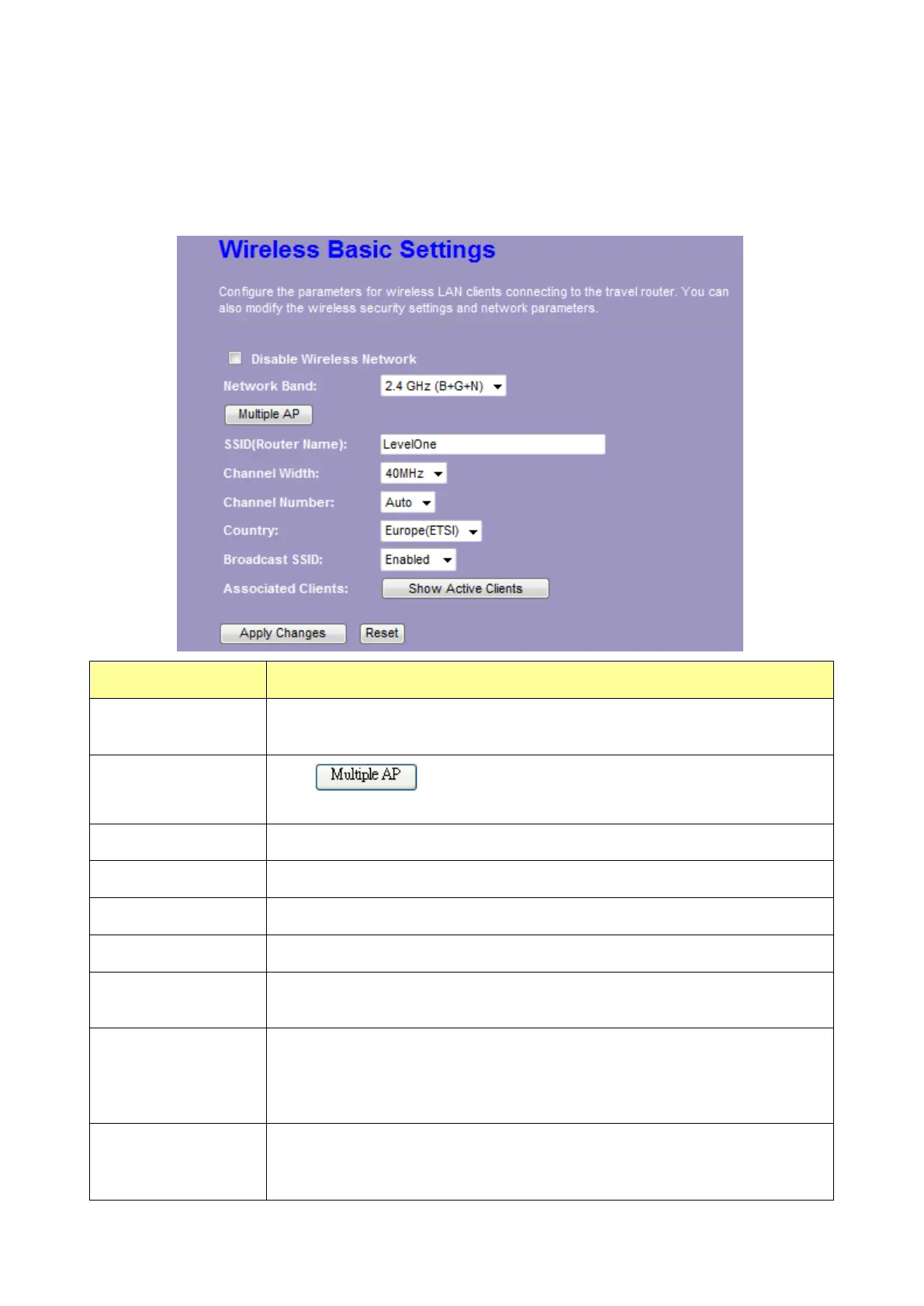 You can set up the configuration of your Wireless basic settings and monitor the Wireless Clients