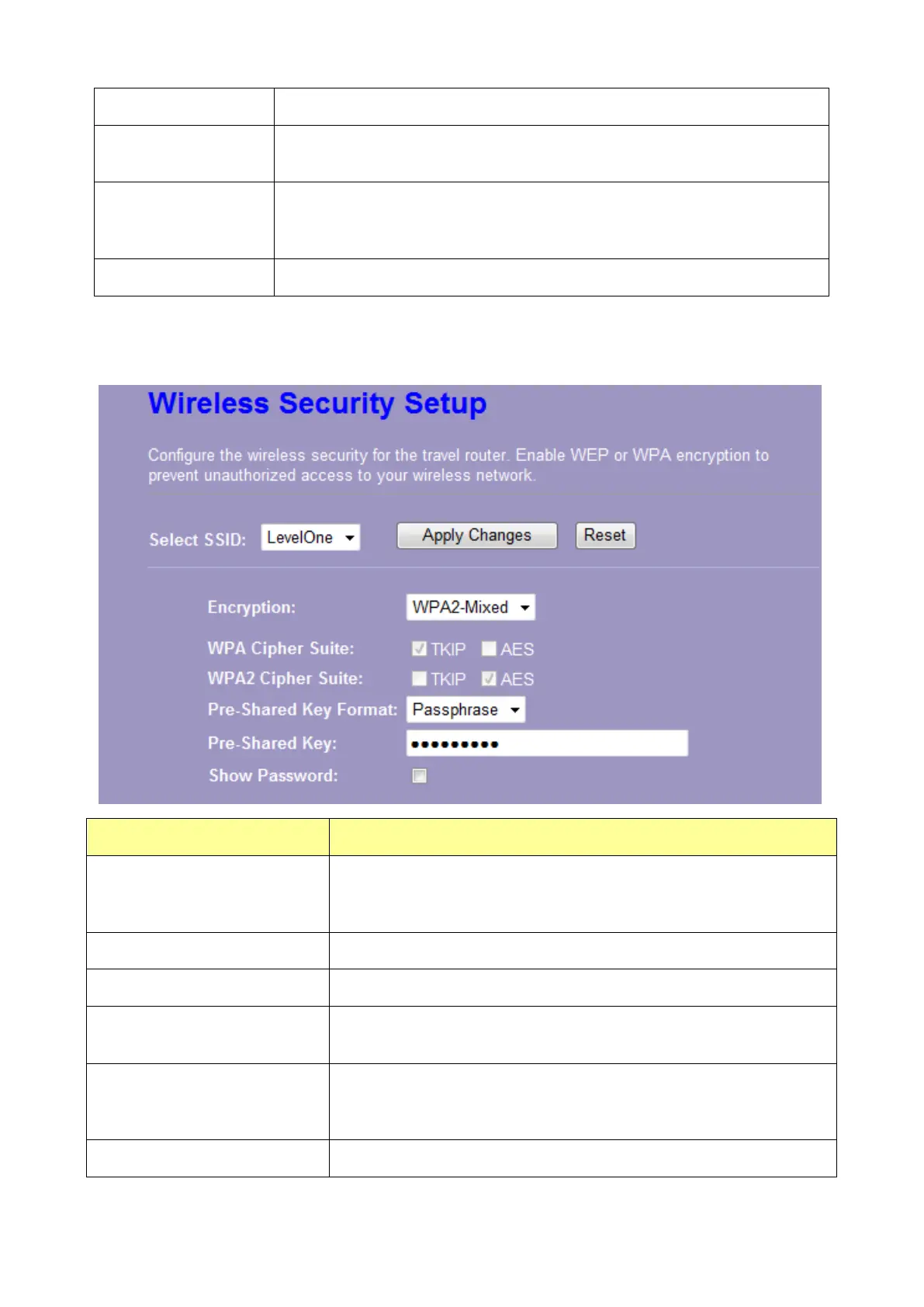 Enter the “Pre-shared Key” according to the pre-shared key format
