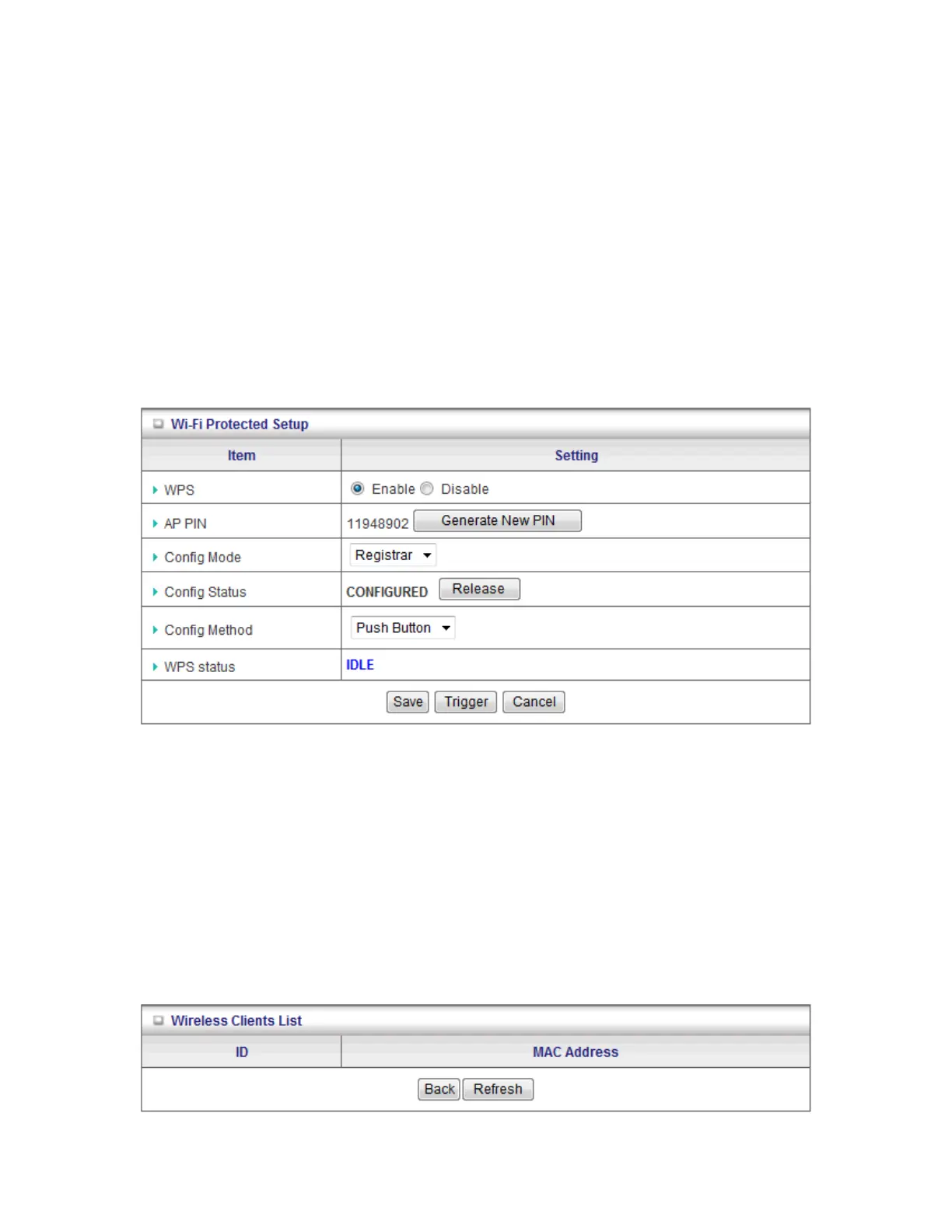 6. WPS status: According to your setting, the status will show “Start Process” or “No used”