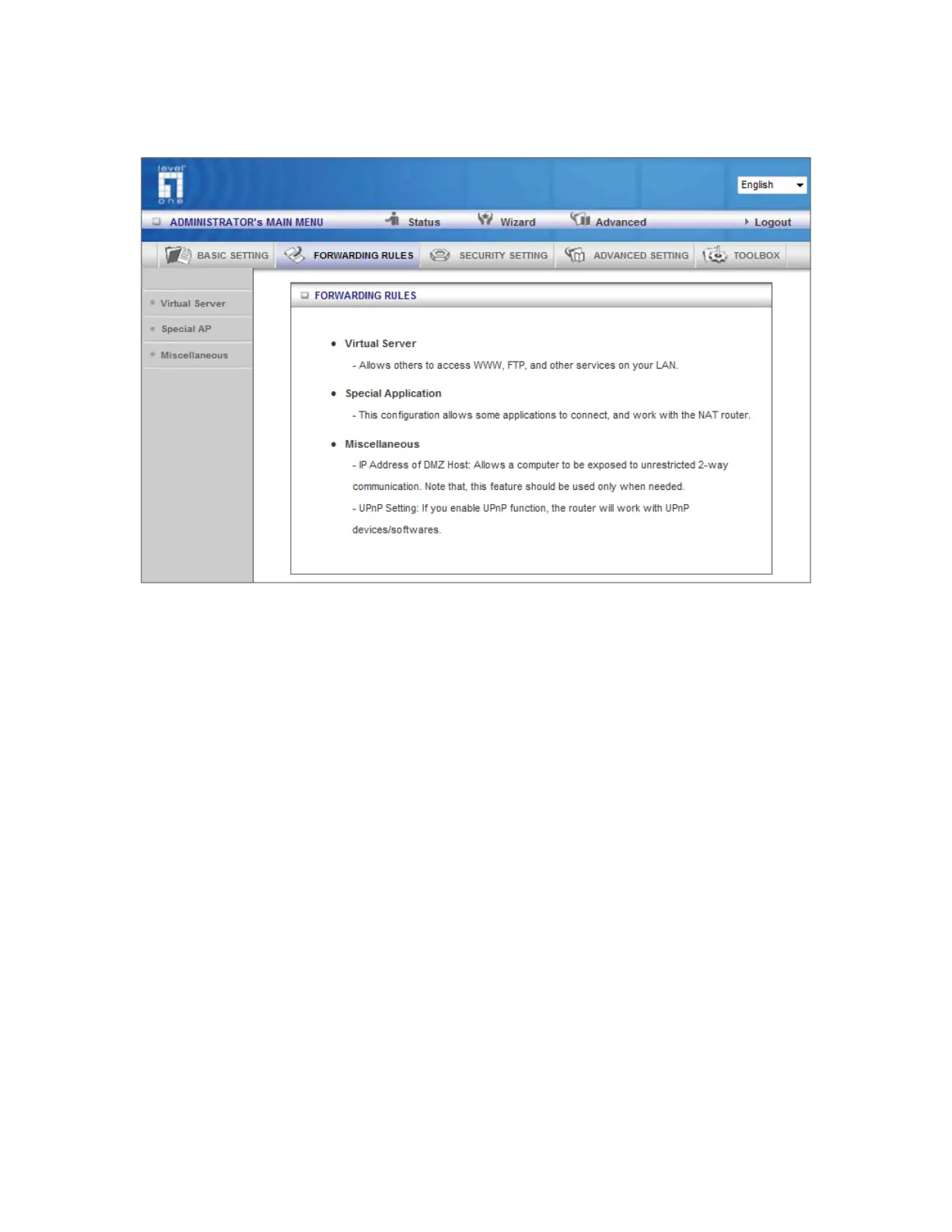 This product’s NAT firewall filters out unrecognized packets to protect your Intranet, so all