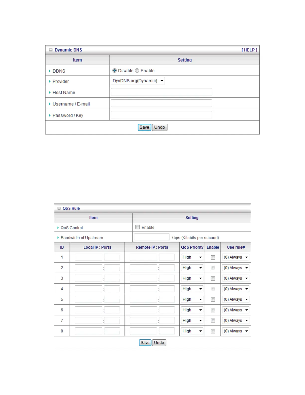 Click on “Save” to store your settings or click “Undo” to give up the changes.