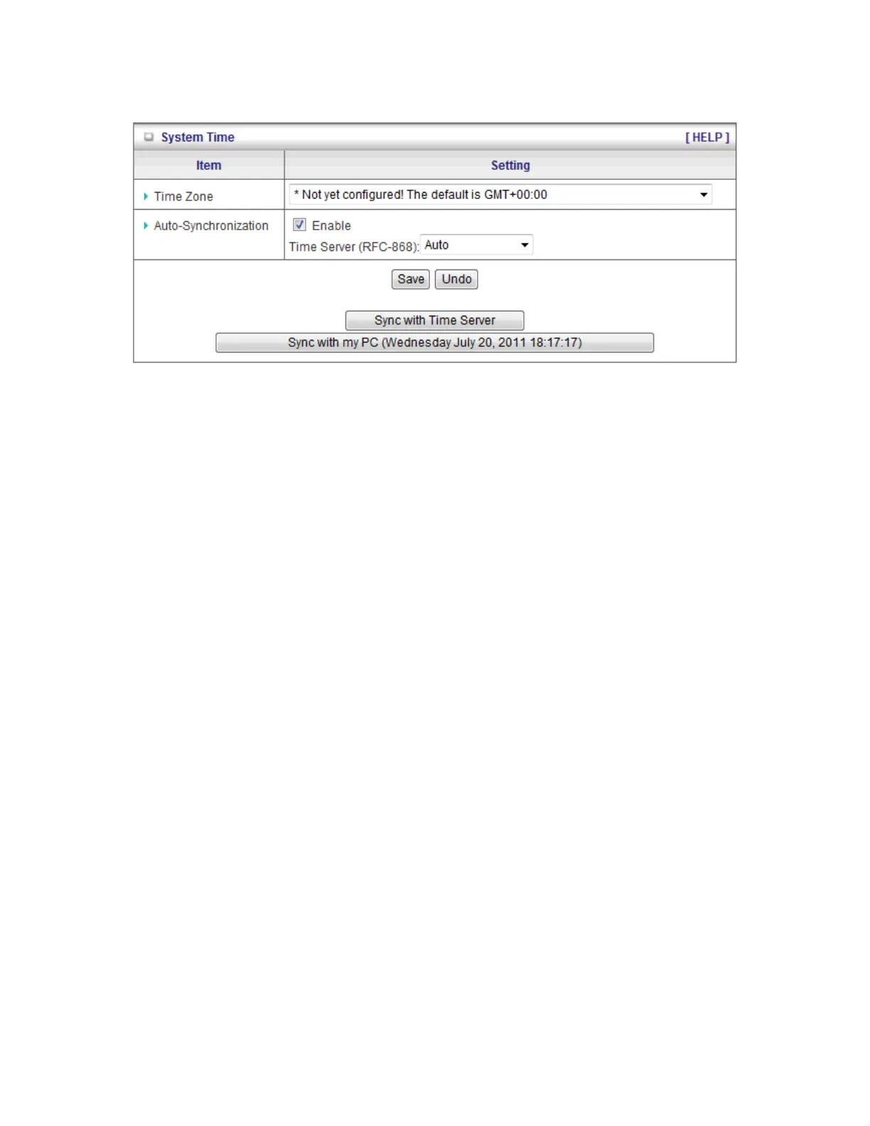 3. Sync with Time Server: Click on the button if you want to set Date and Time by NTP