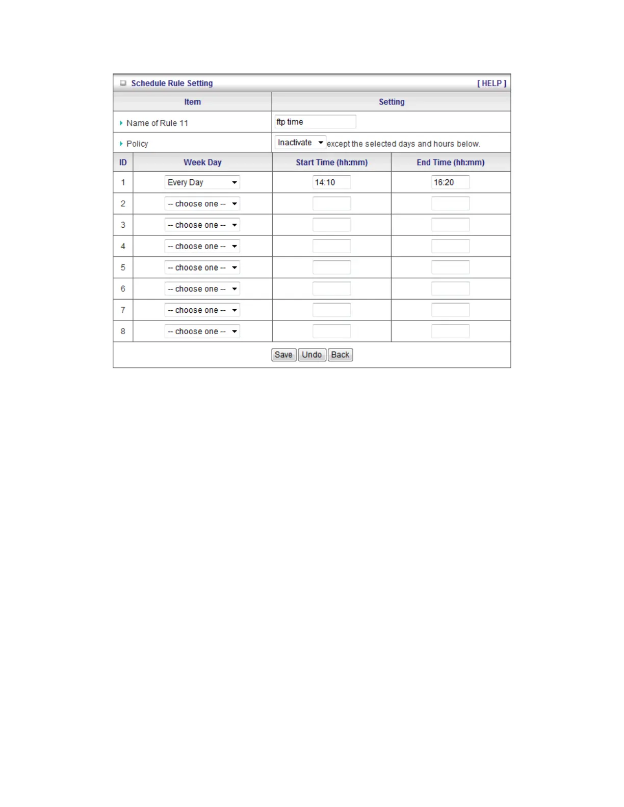 Click on “Save” to store your settings or click “Undo” to give up the changes.