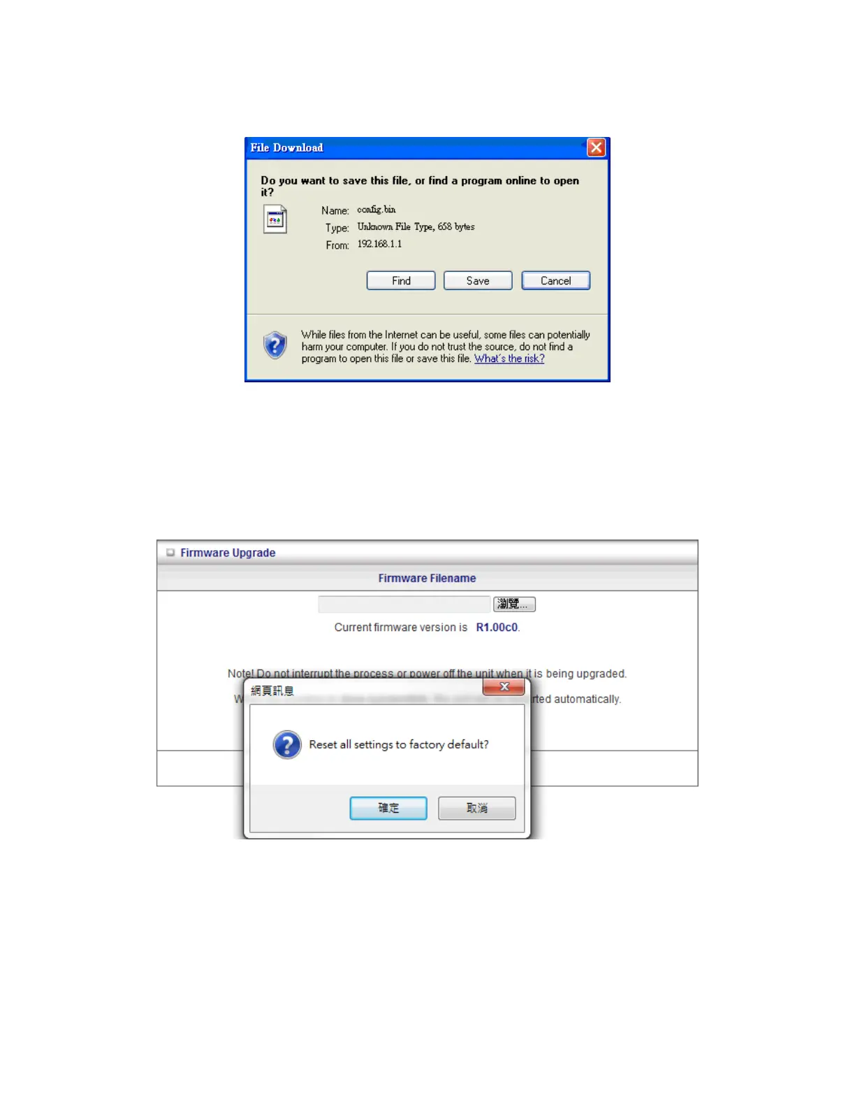 bin file. Once you want to restore these settings, please click Firmware Upgrade button and