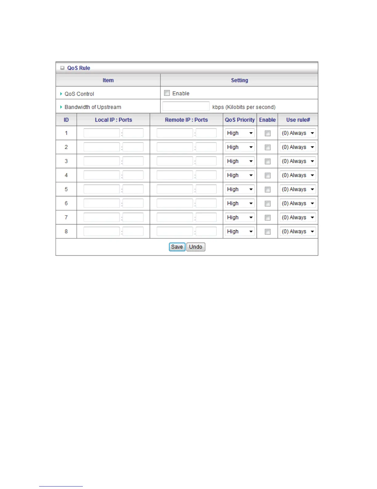 6. Enable: Check to enable the corresponding QOS rule.