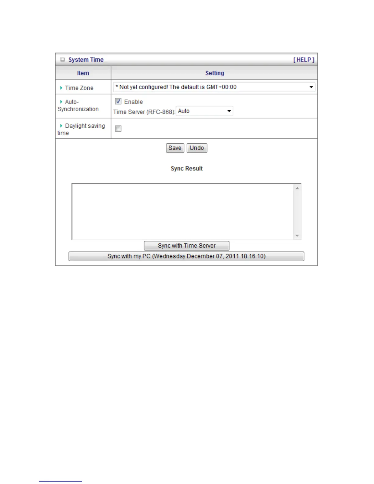 3. Sync with Time Server: Click on the button if you want to set Date and Time by NTP
