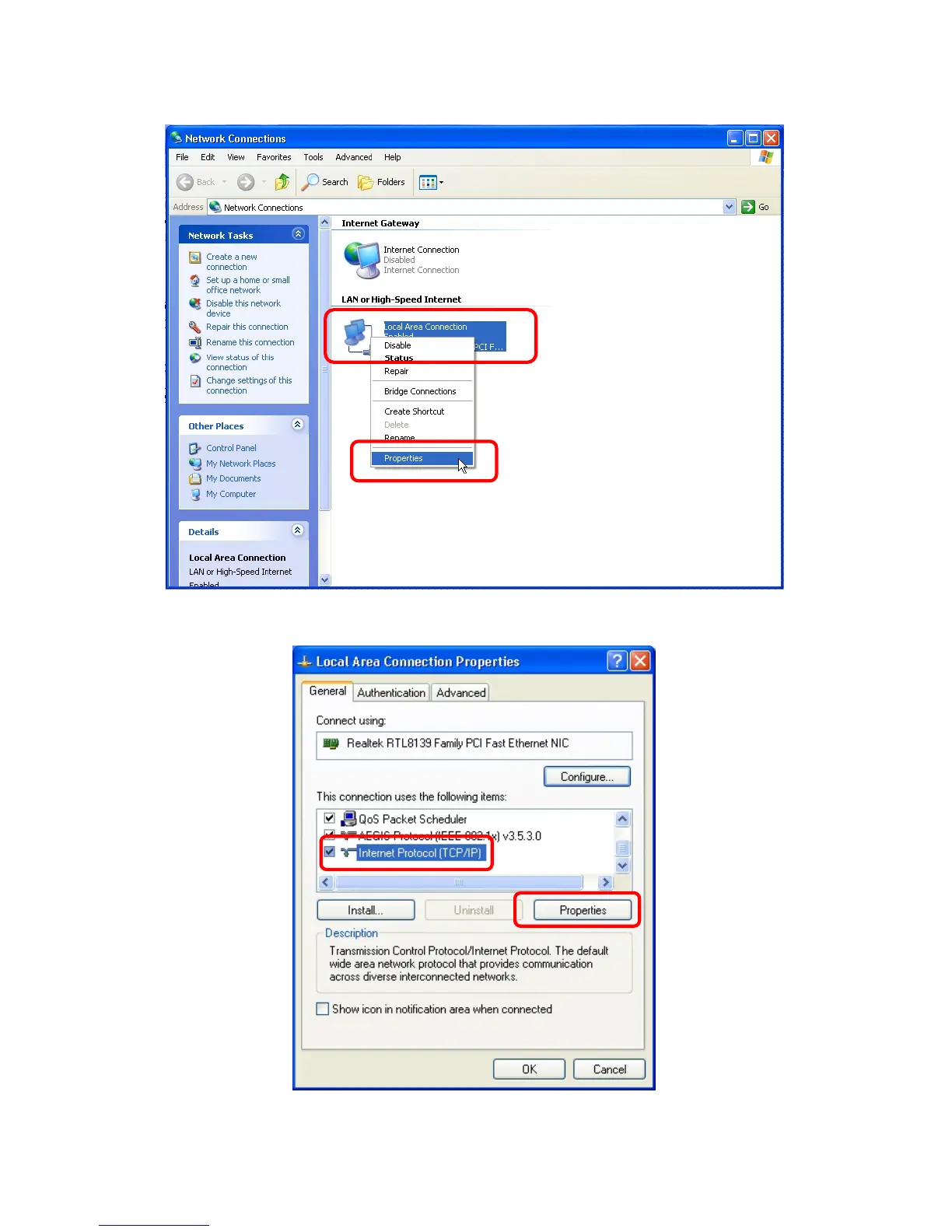 LevelOne WBR-6805 - Network Connection Properties; TCP;IP Properties Access