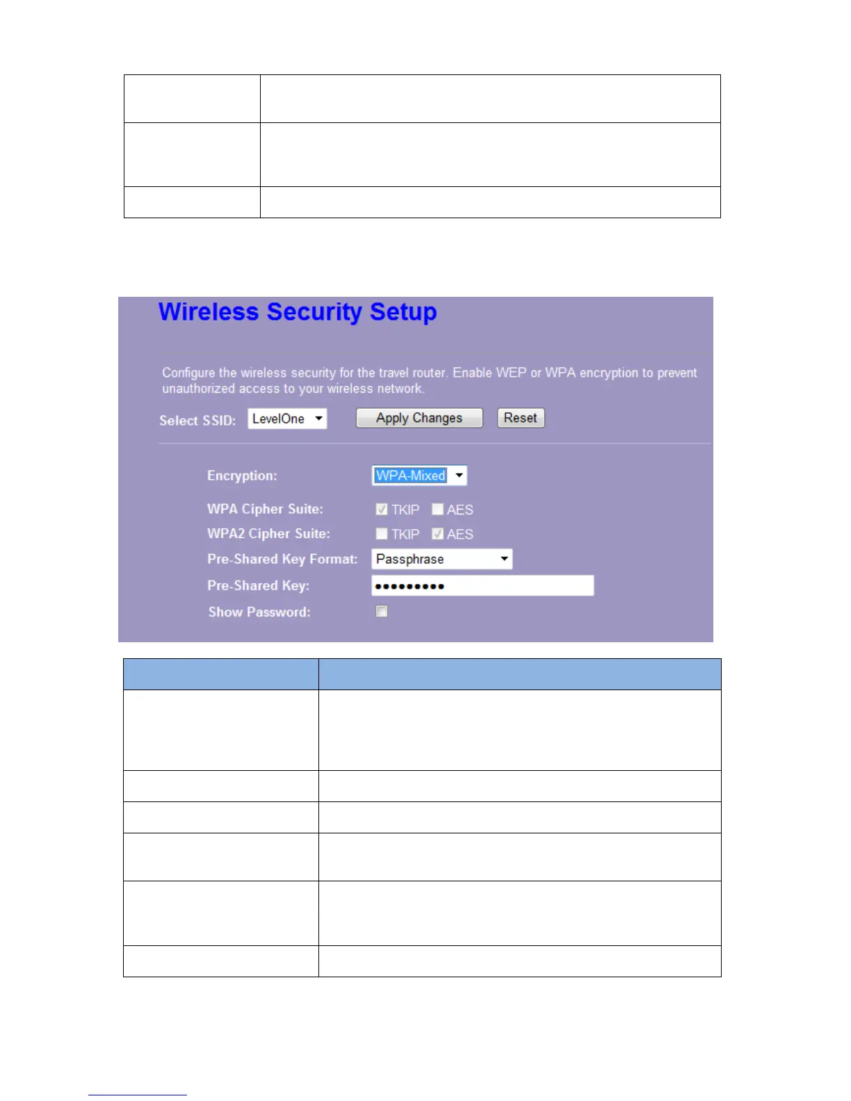 * Please click on the Apply Changes button or the Reset button to save/reset the