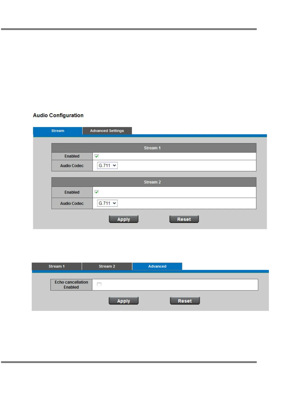 User can either enable or disable the audio function. If audio enable is selected, select the