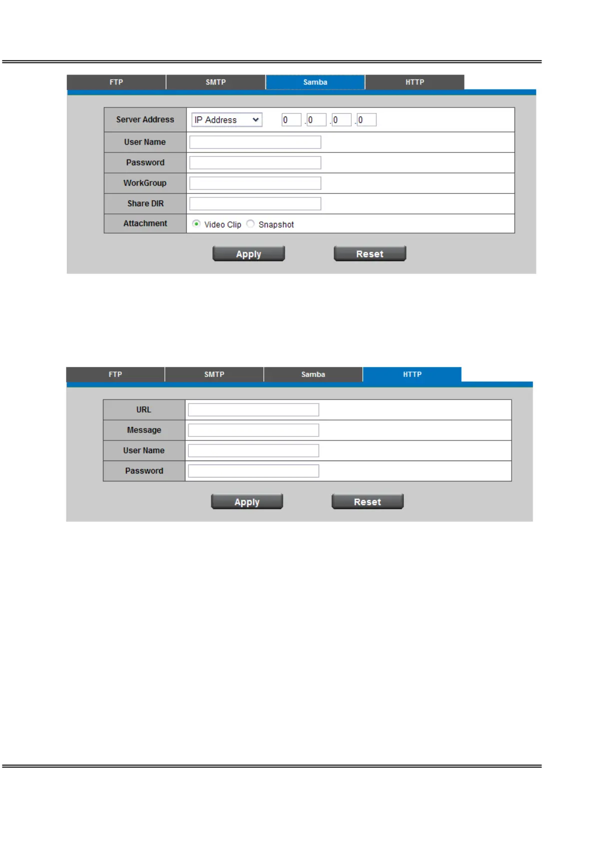 HTTP - Select to send the media files to a HTTP server when a trigger is activated.