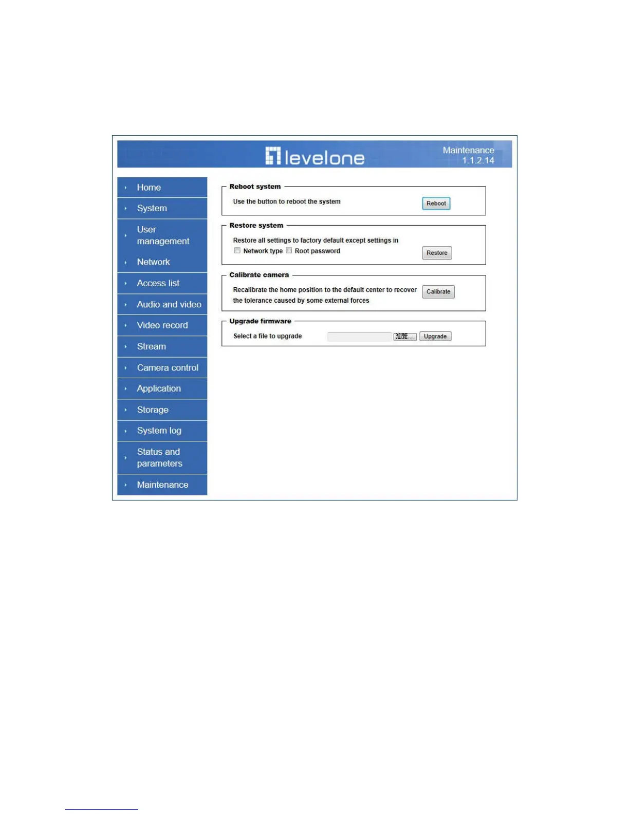 1. Reboot system: The Reboot button will reboot the Network Camera. It’s
