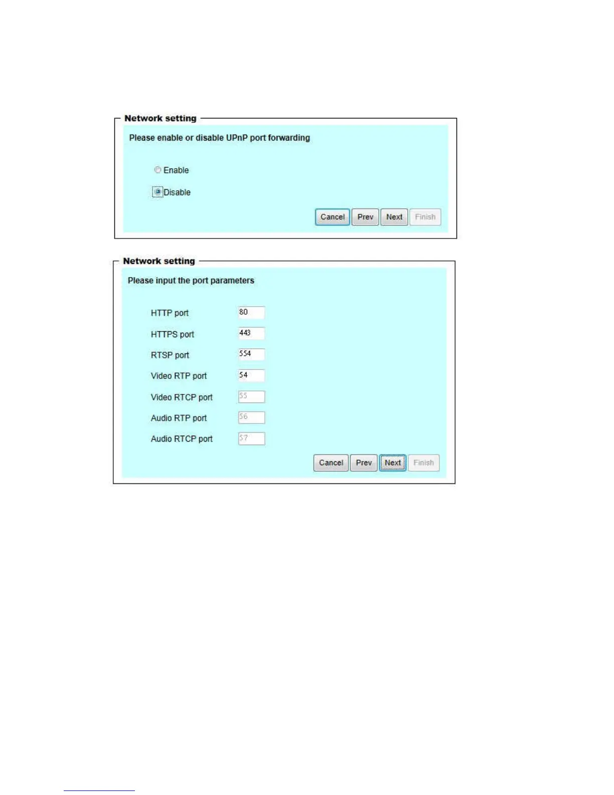 2. Go to camera Network page. Disable UPnP port forwarding function.