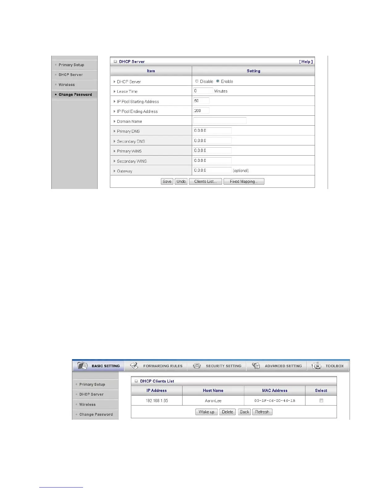 6. Primary WINS/Secondary WINS: This feature allows you to assign WINS Servers