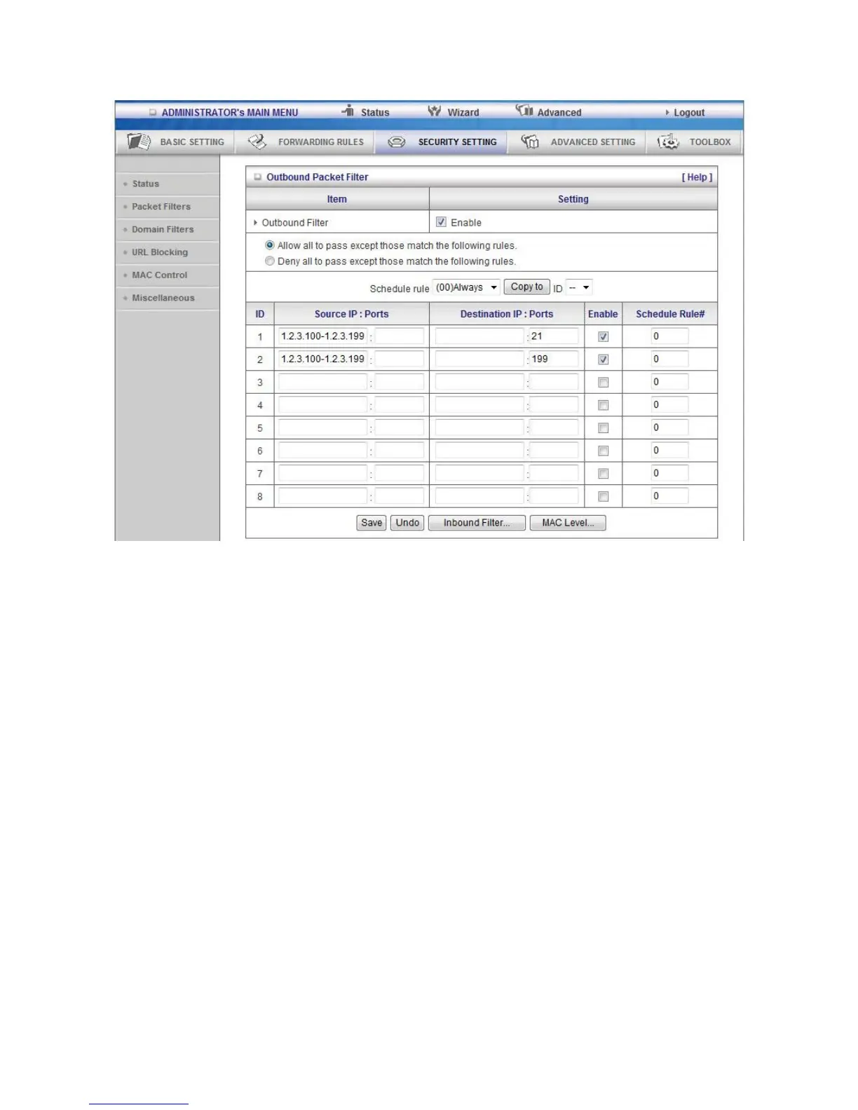 (1.2.3.100-1.2.3.119) Remote hosts can do everything except read net news (port 119) and transfer files via