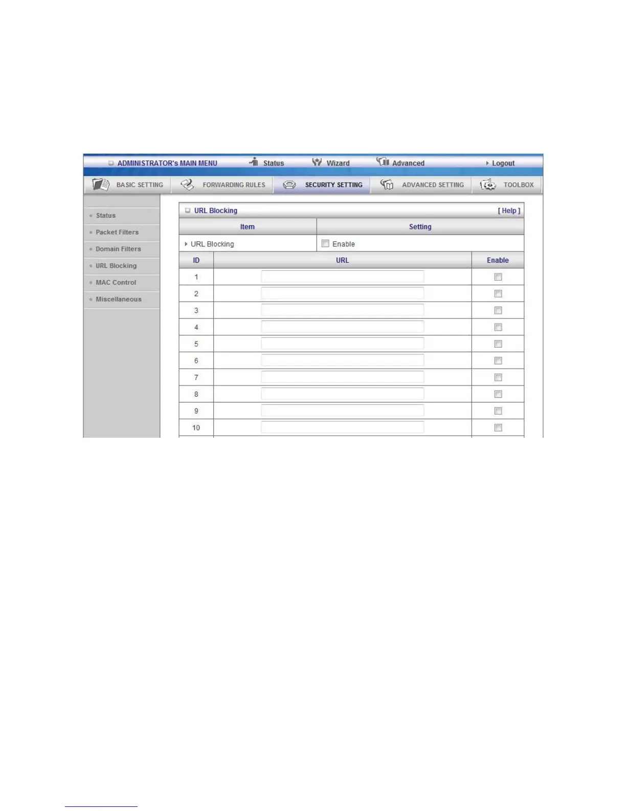 URL Blocking will block LAN computers to connect to pre-defined Websites.