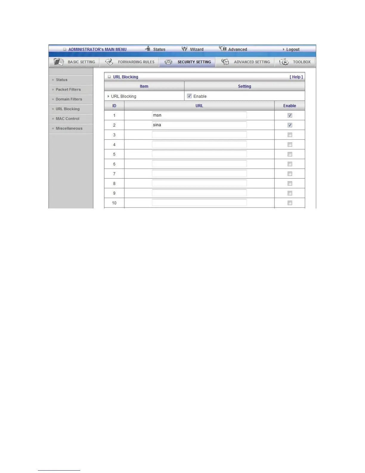 1. URL include “msn” will be blocked, and the action will be record in log-file.