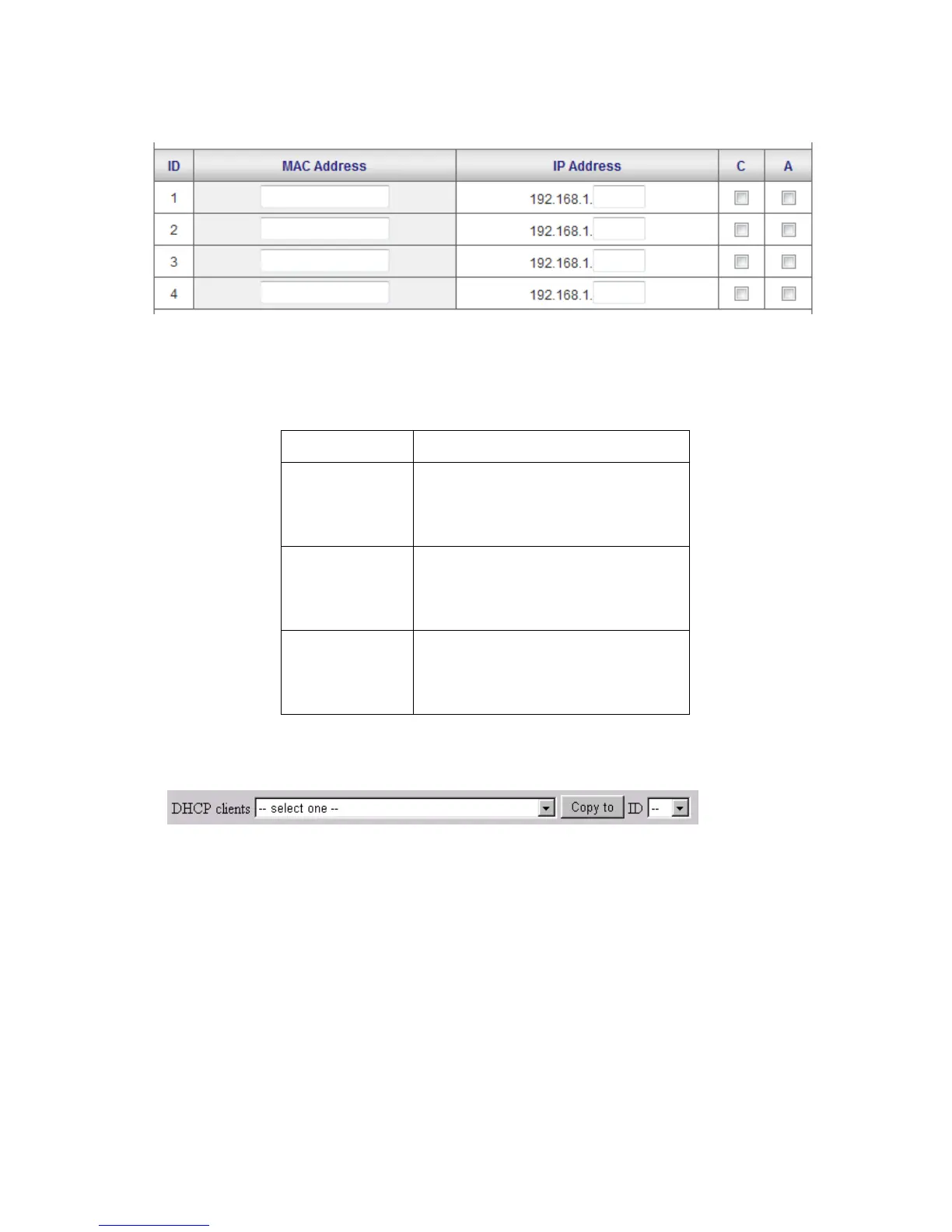 "Control table" is the table at the bottom of the "MAC Address Control" page. Each