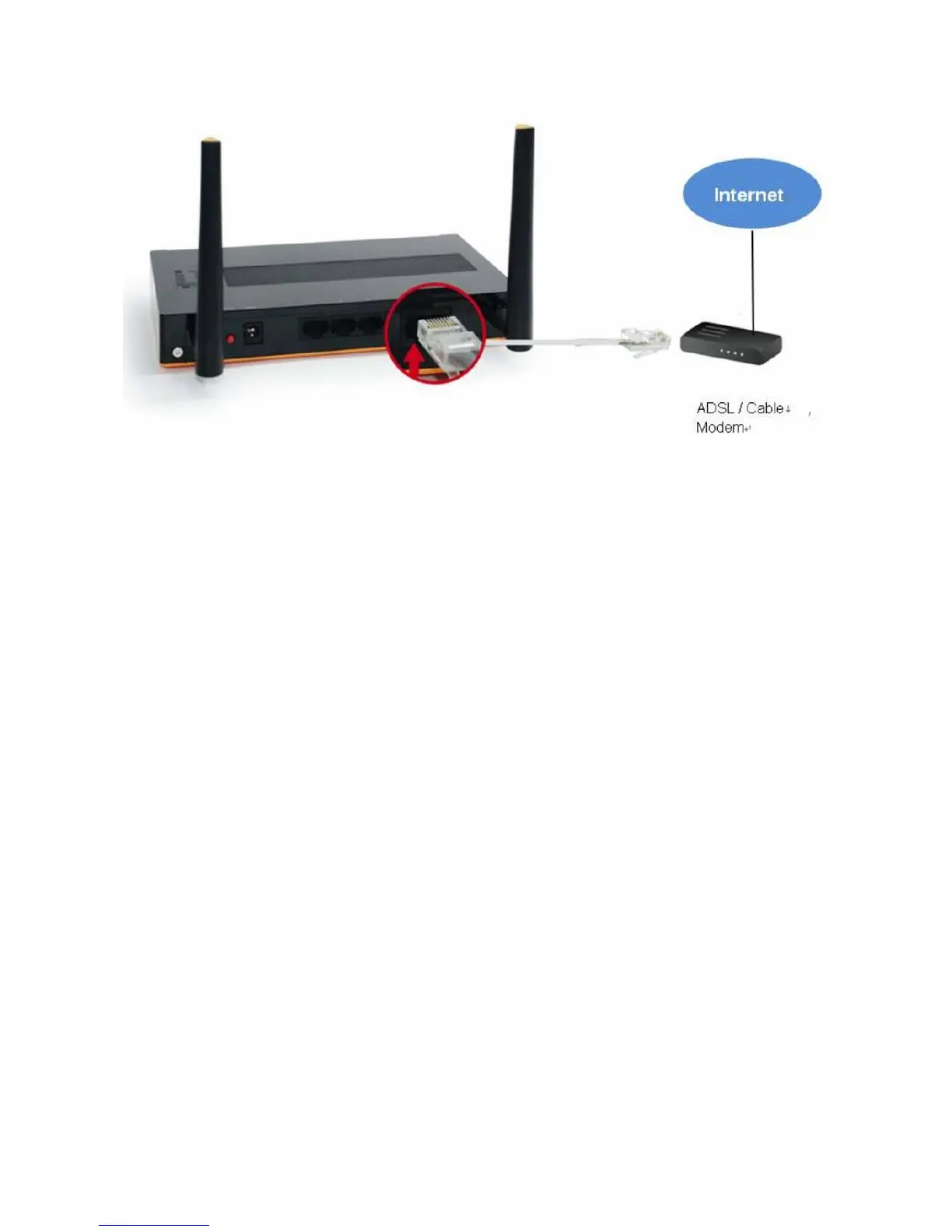 4.1. Connect the power adapter to the receptor on the back panel of your Router and Push Power switch