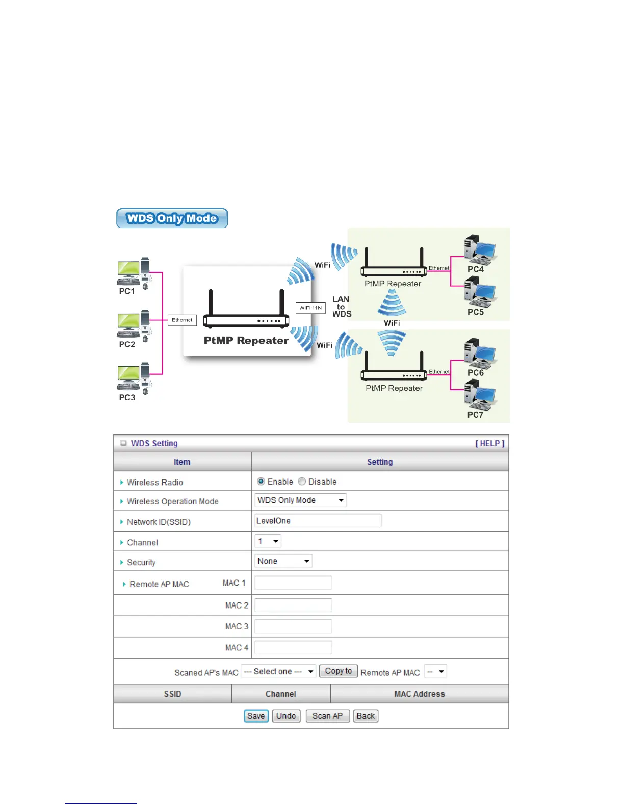 Remote AP MAC : Choose “Manual” or scan one AP to copy to item1~4.