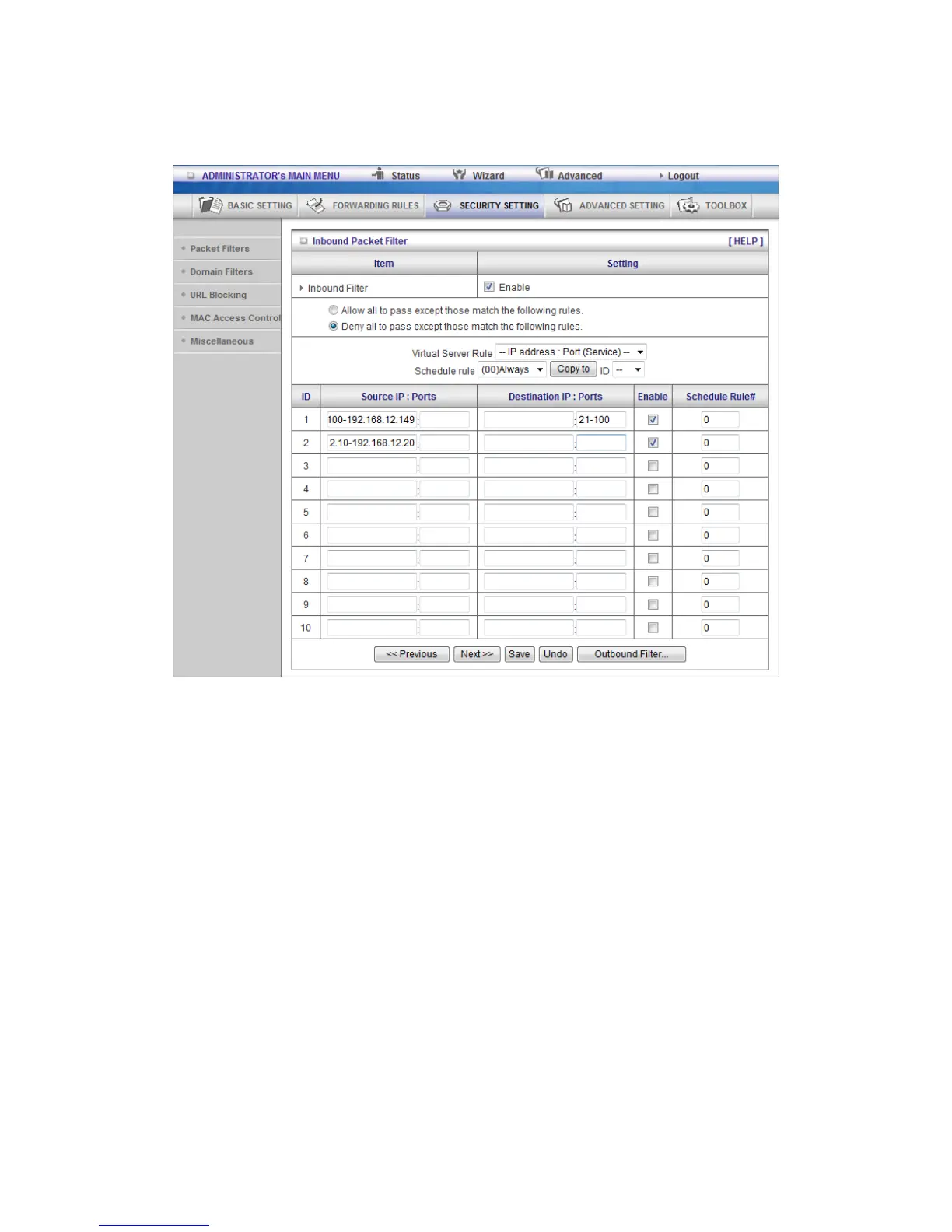 (192.168.12.10-192.168.12.20) Located hosts can do everything (block nothing)