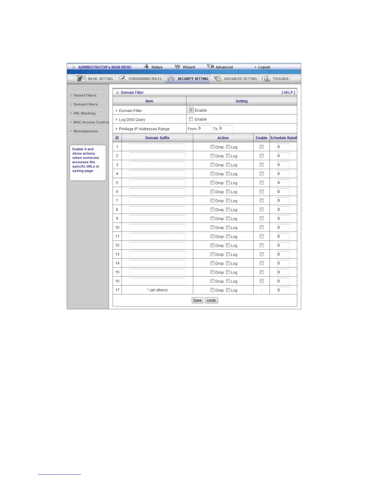 Domain Filter Enable