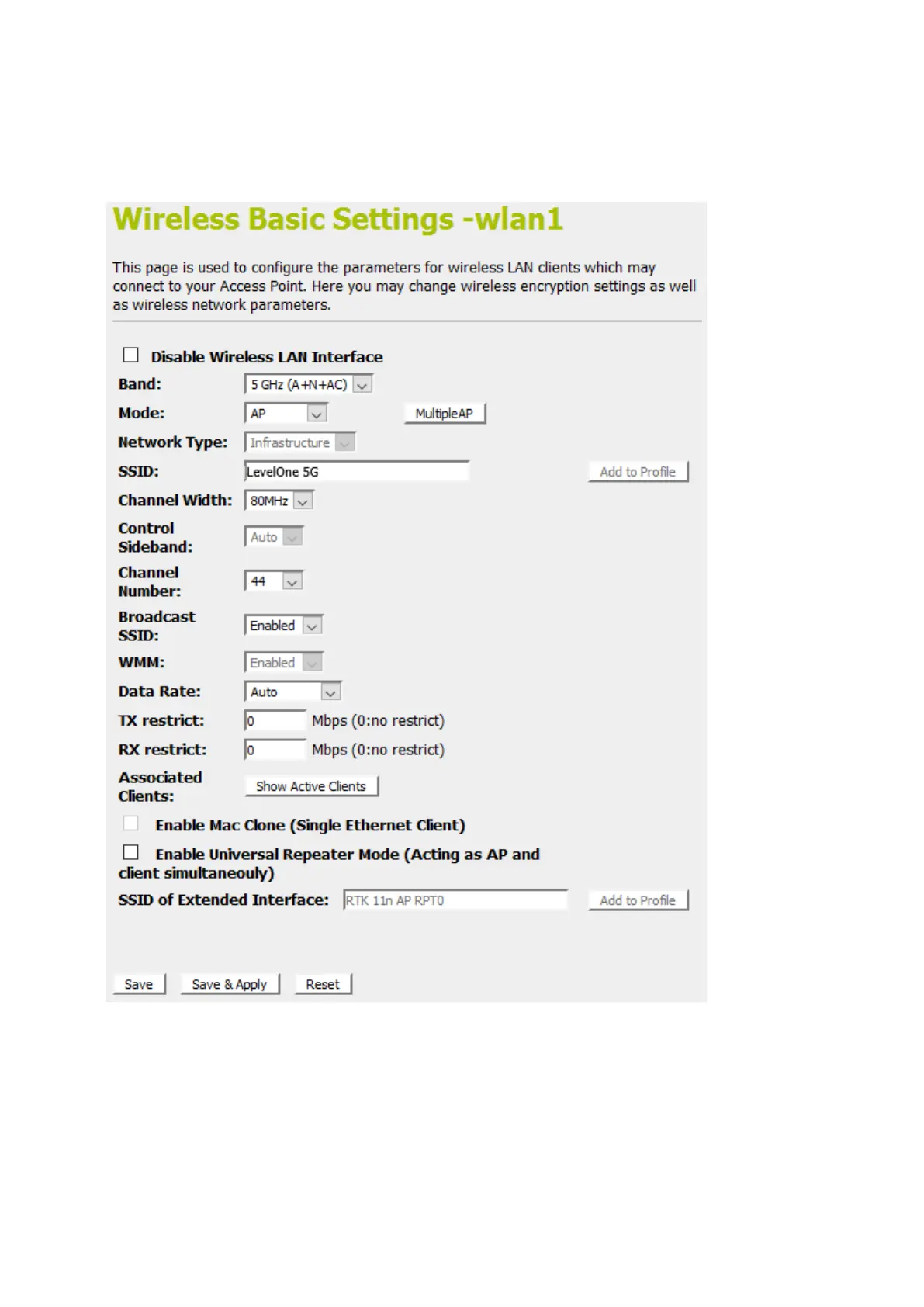 LevelOne WGR-8031 - Wireless Basic Settings - Wlan1 Page