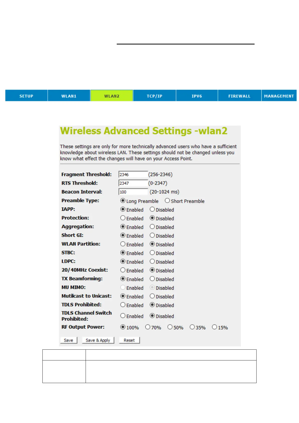 Wireless Network Advanced Settings page: