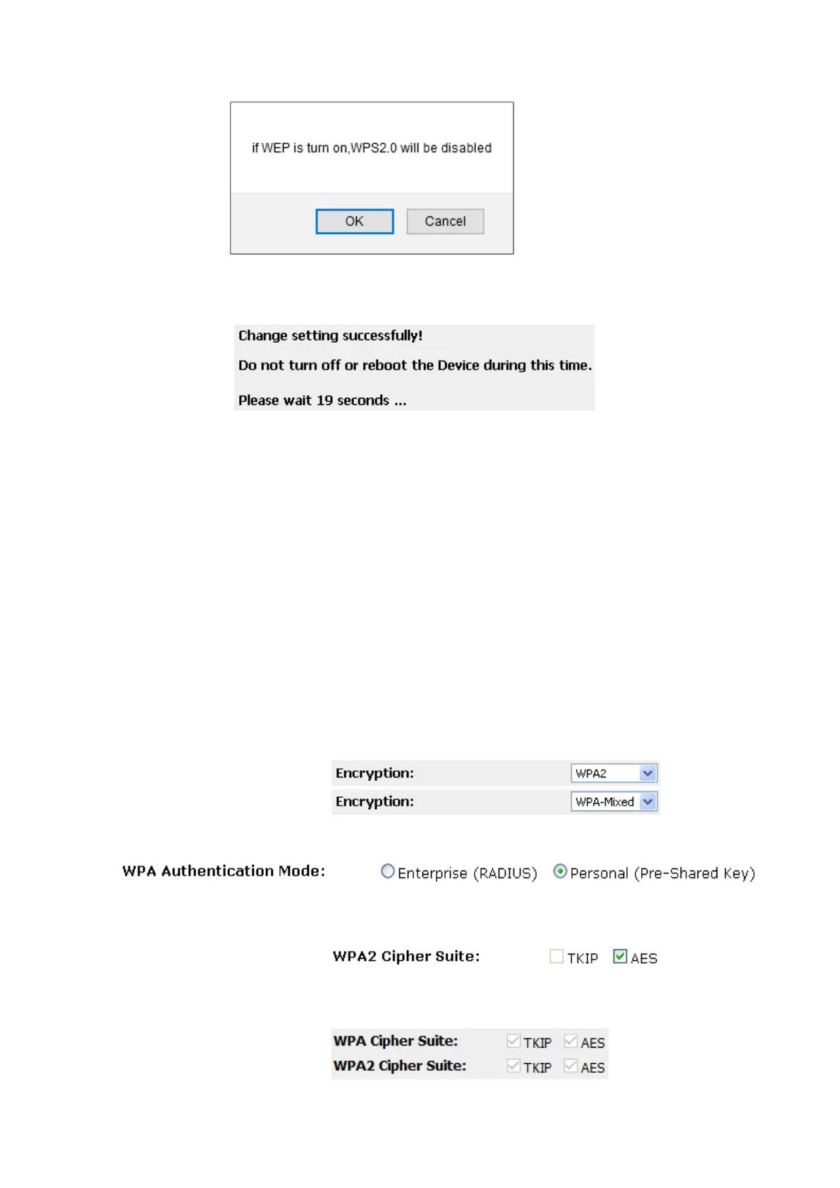 3. Check the option of TKIP and/or AES in WPA2 Cipher Suite