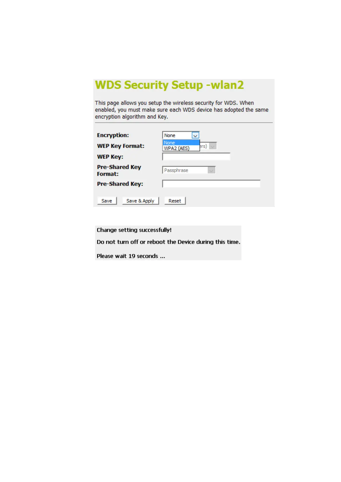 12. This page allows you setup the wireless security for WDS.