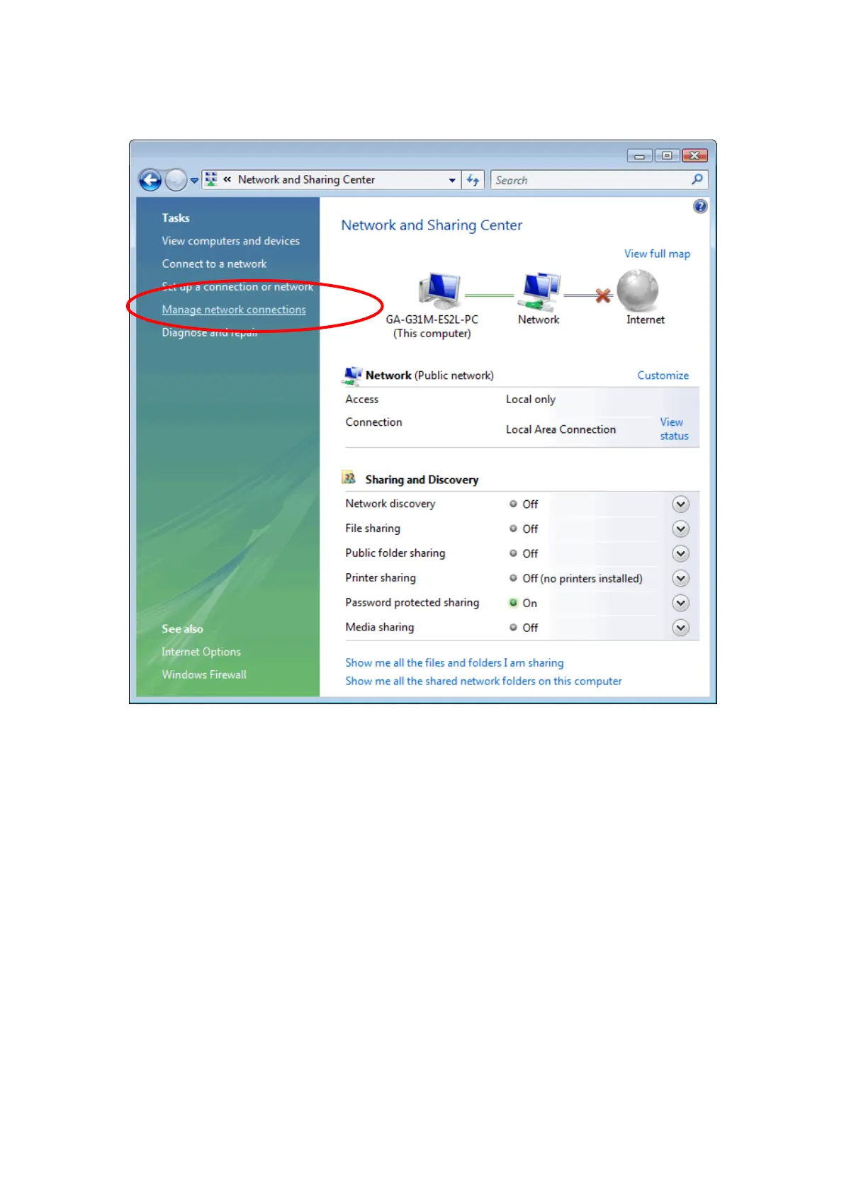 2. In the Manage network connections, click on ā€œManage