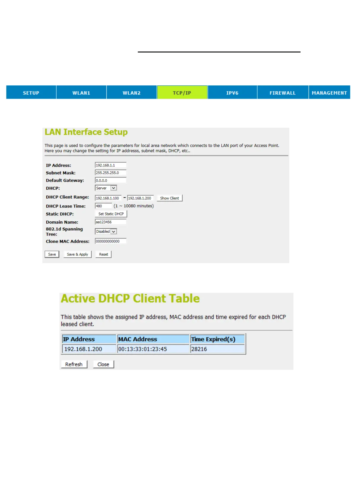 To the IP Address, MAC Address, and Expired Time of the