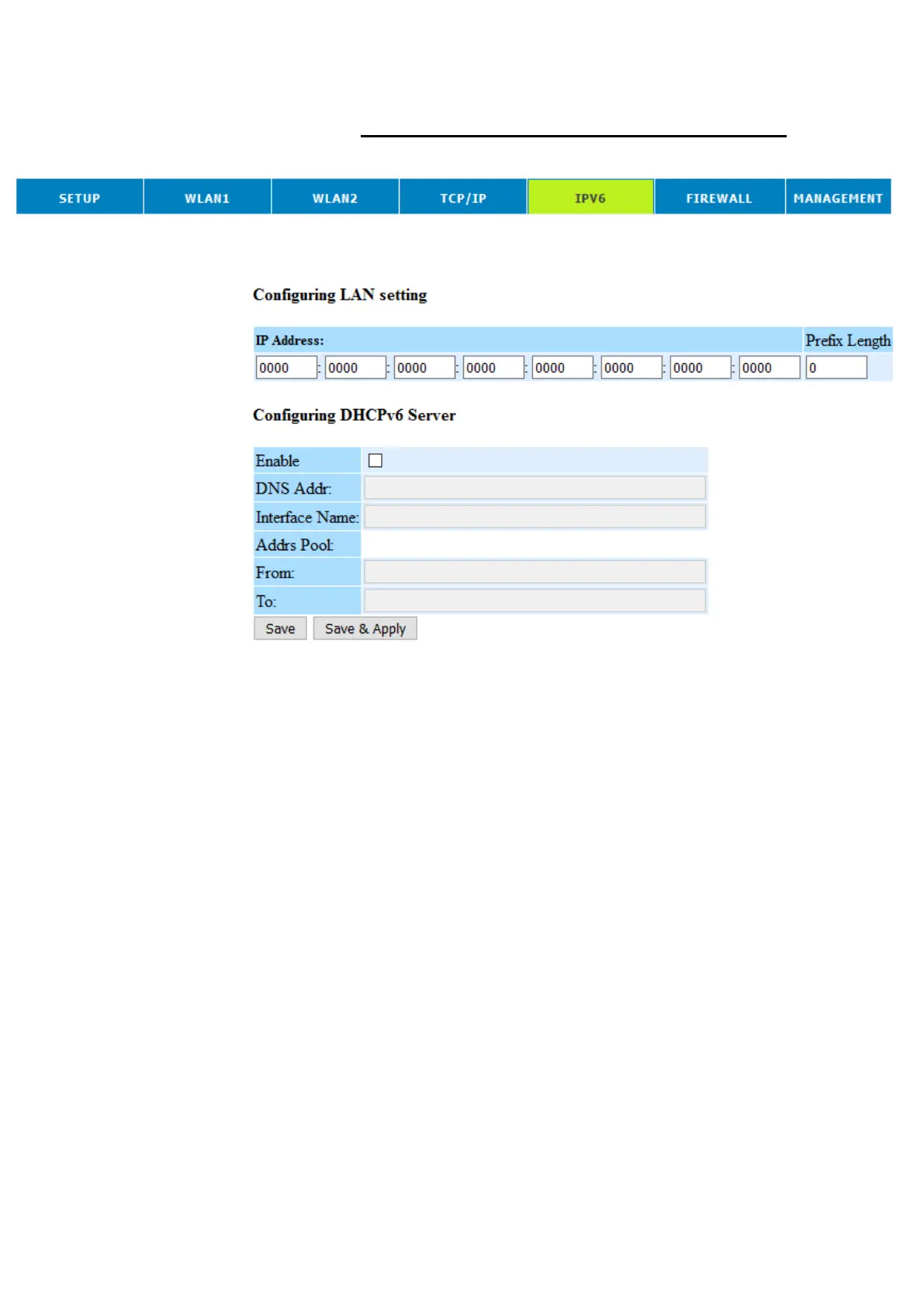 IPV6 LAN SETTING