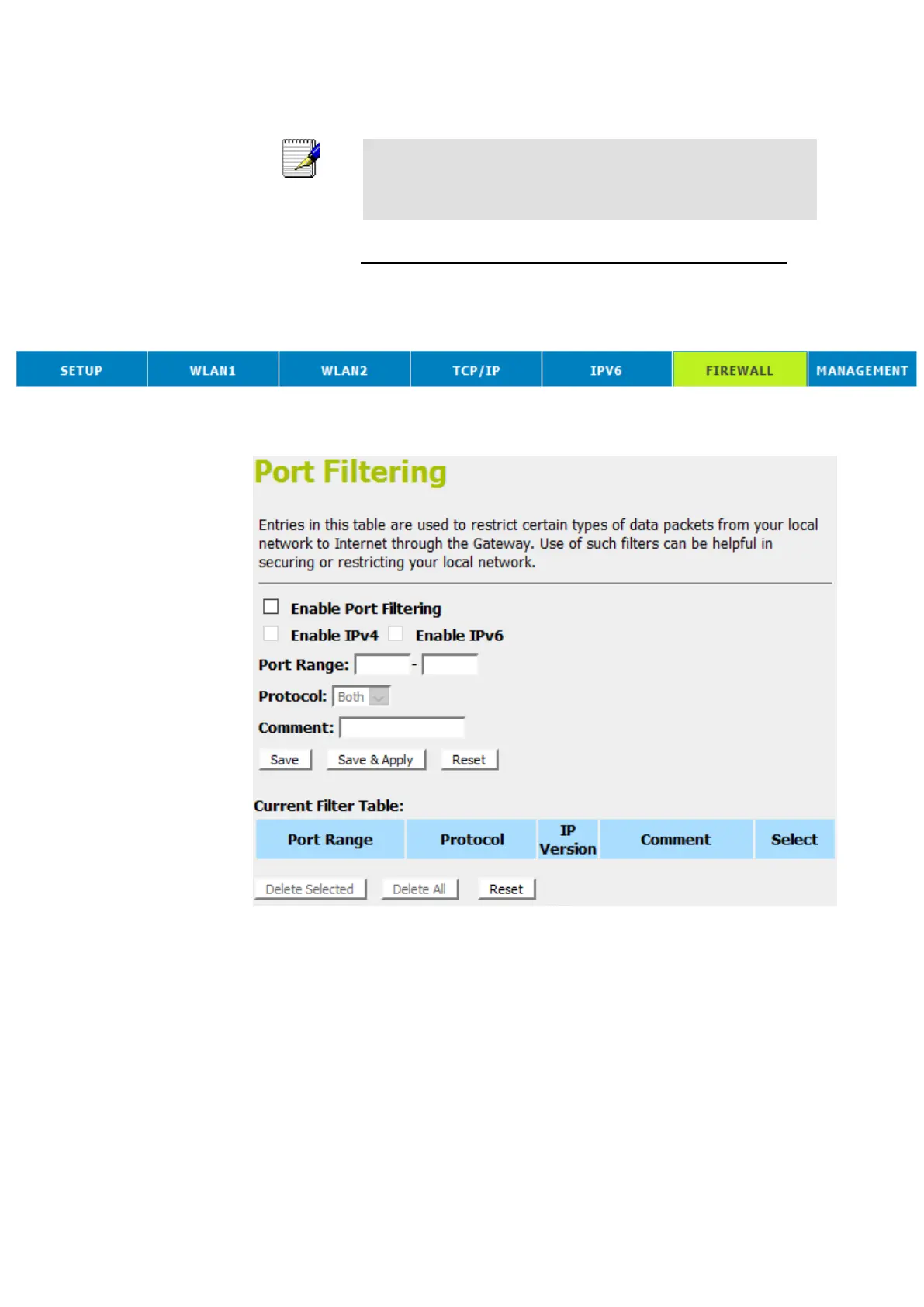 2. From the left-hand menu, click on Port Filtering. The