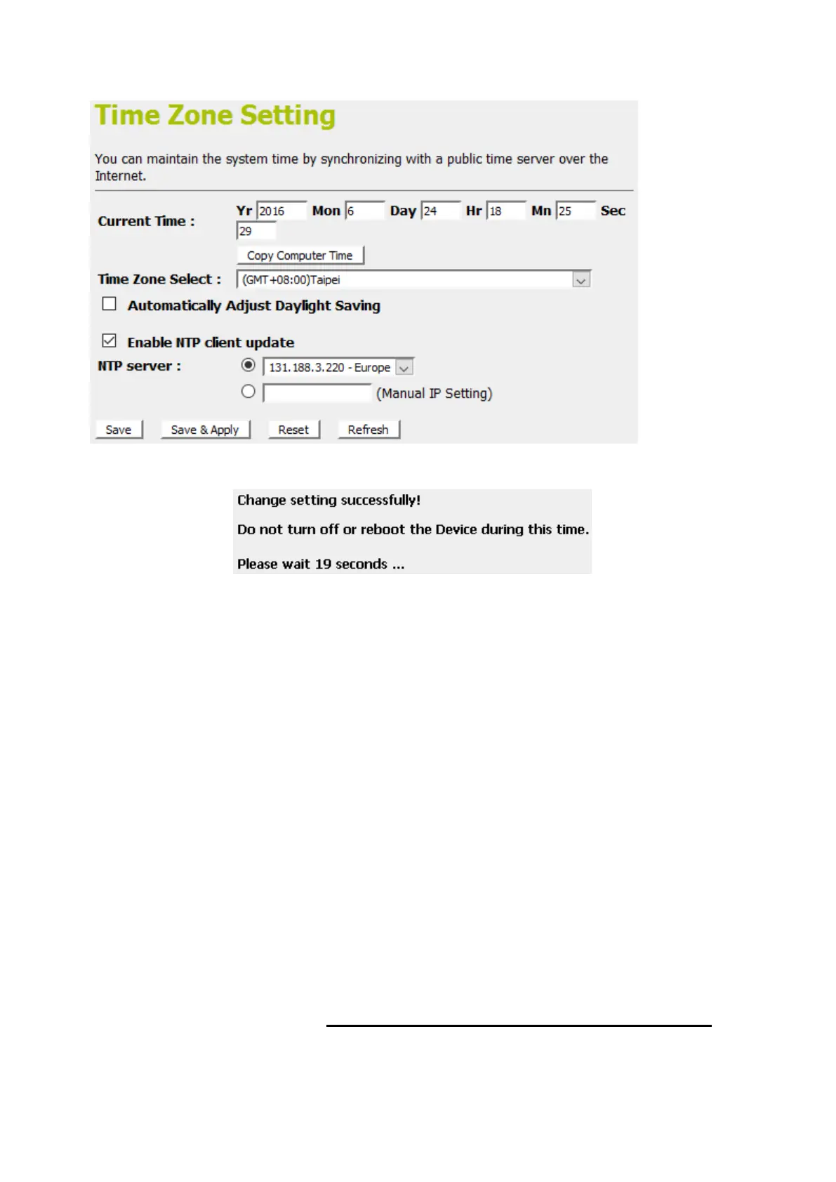 7. Change setting successfully! Please wait 20 seconds….