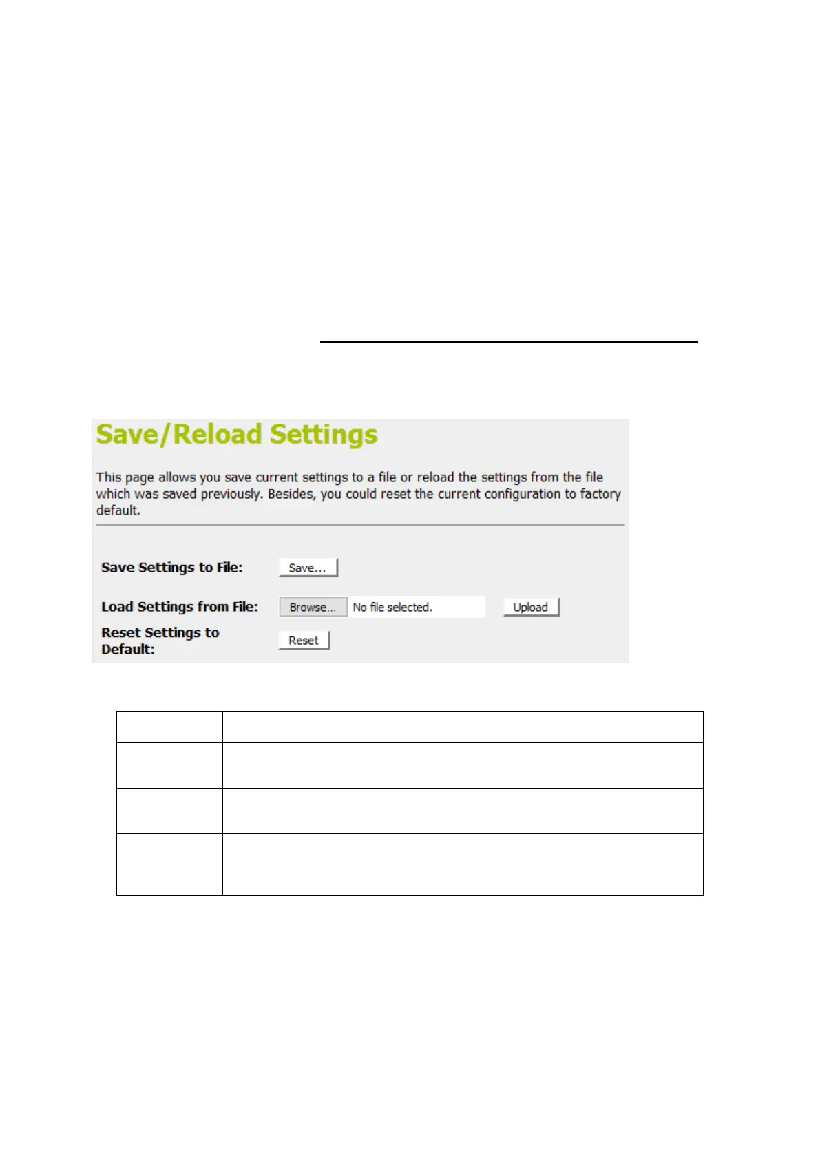 This page allows you save current settings to a file or reload the