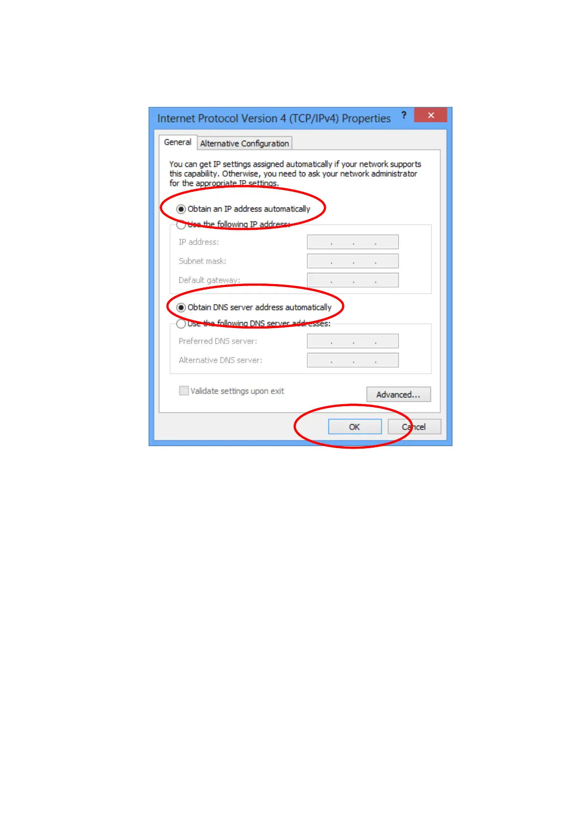 DNS server address automaticallyā€ then click on "OK" to