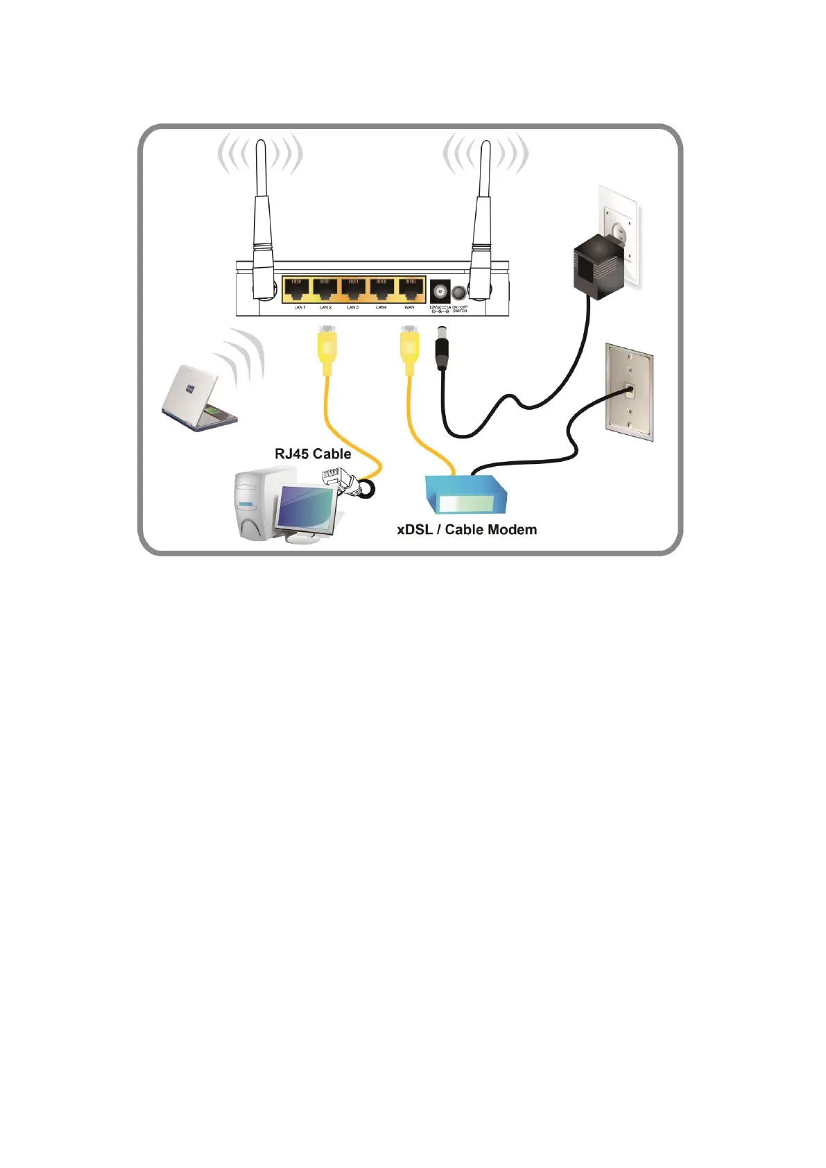 Connect the RJ45 Ethernet cable from your xDSL/Cable