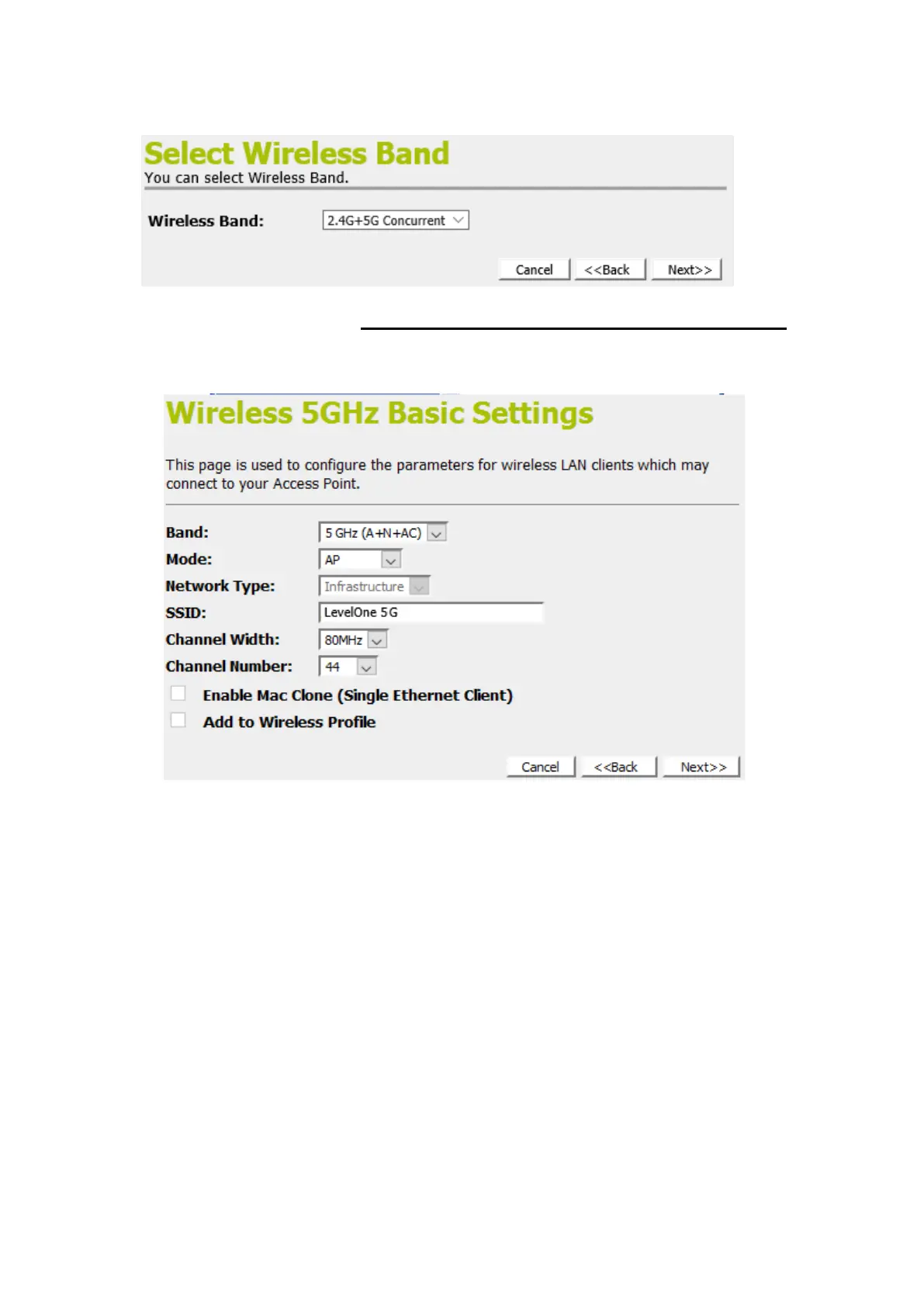 3. Enter SSID for example LevelOne 5G
