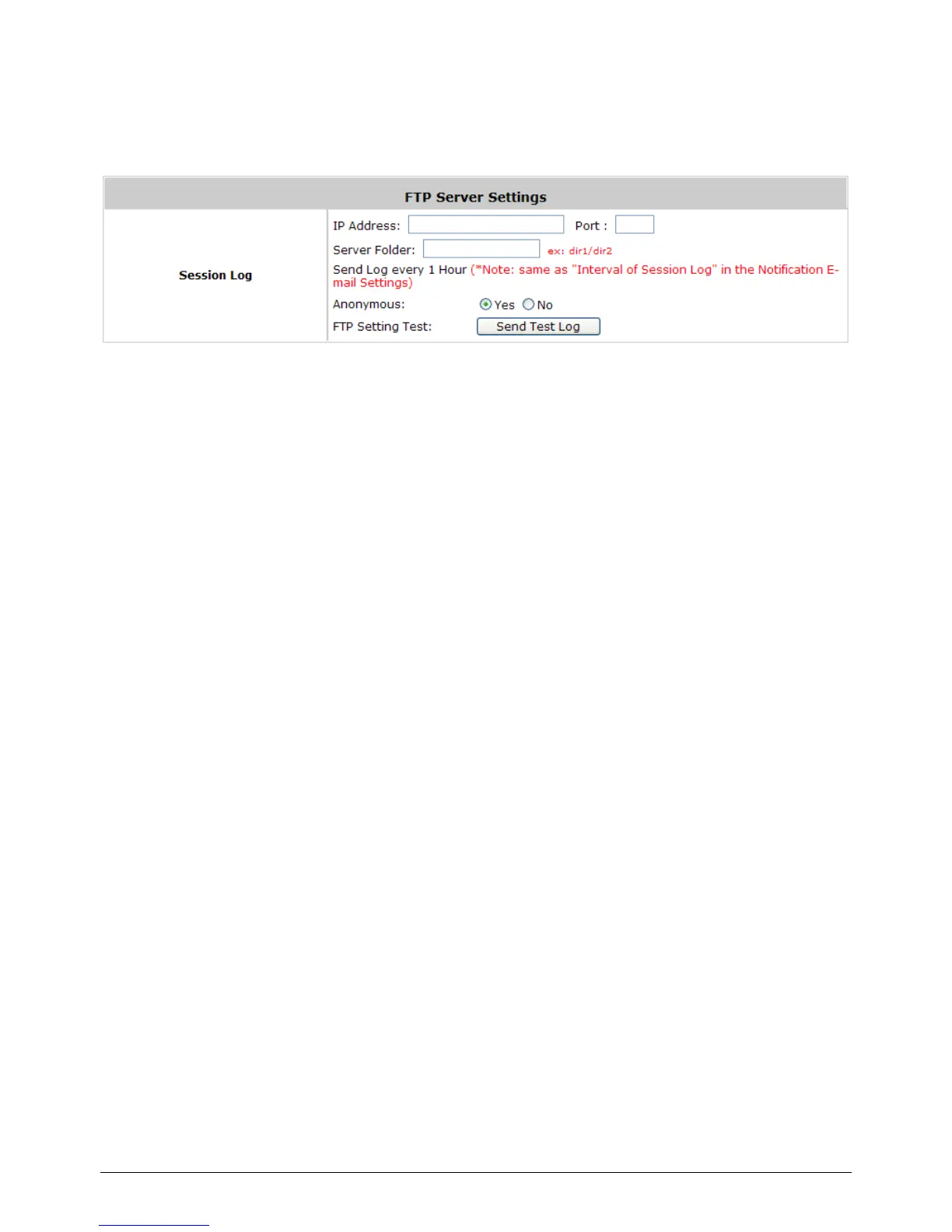 IP/Port. Session Log will be sent to the FTP server automatically during every defined interval in