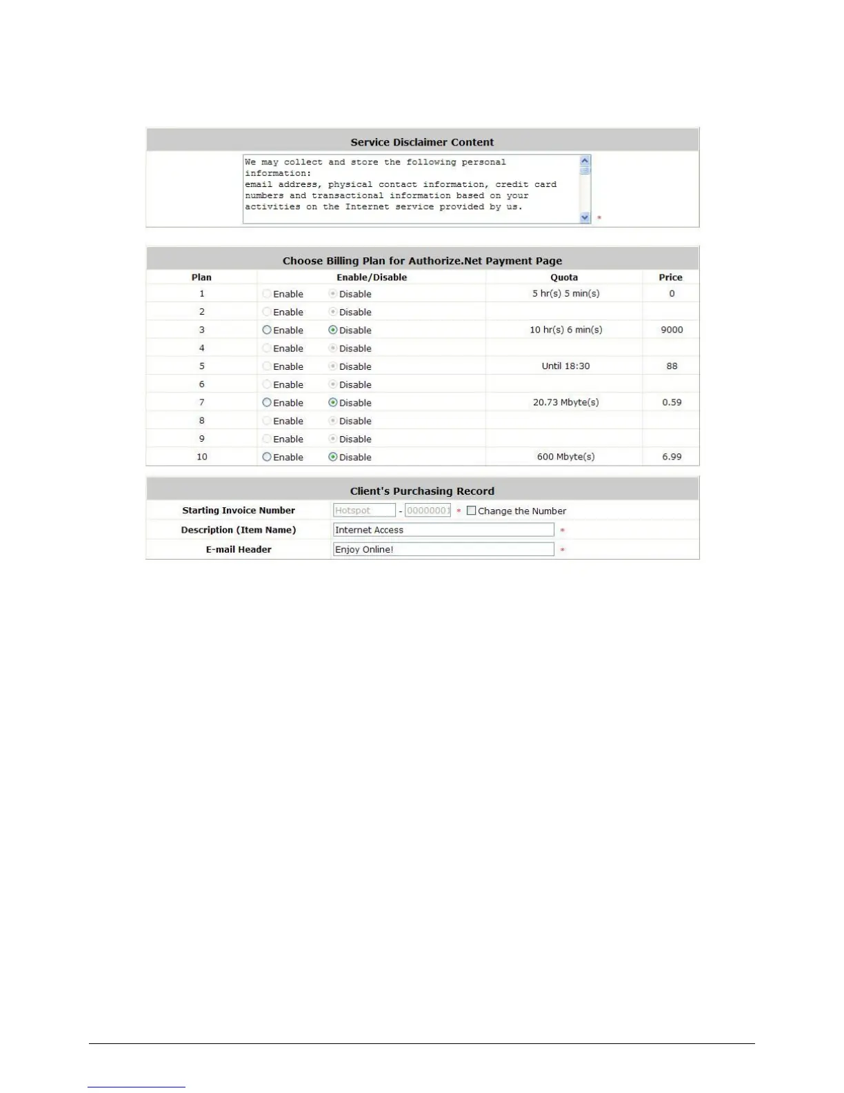 Service Disclaimer Content/ Choose Billing Plan for Authorize.Net Payment