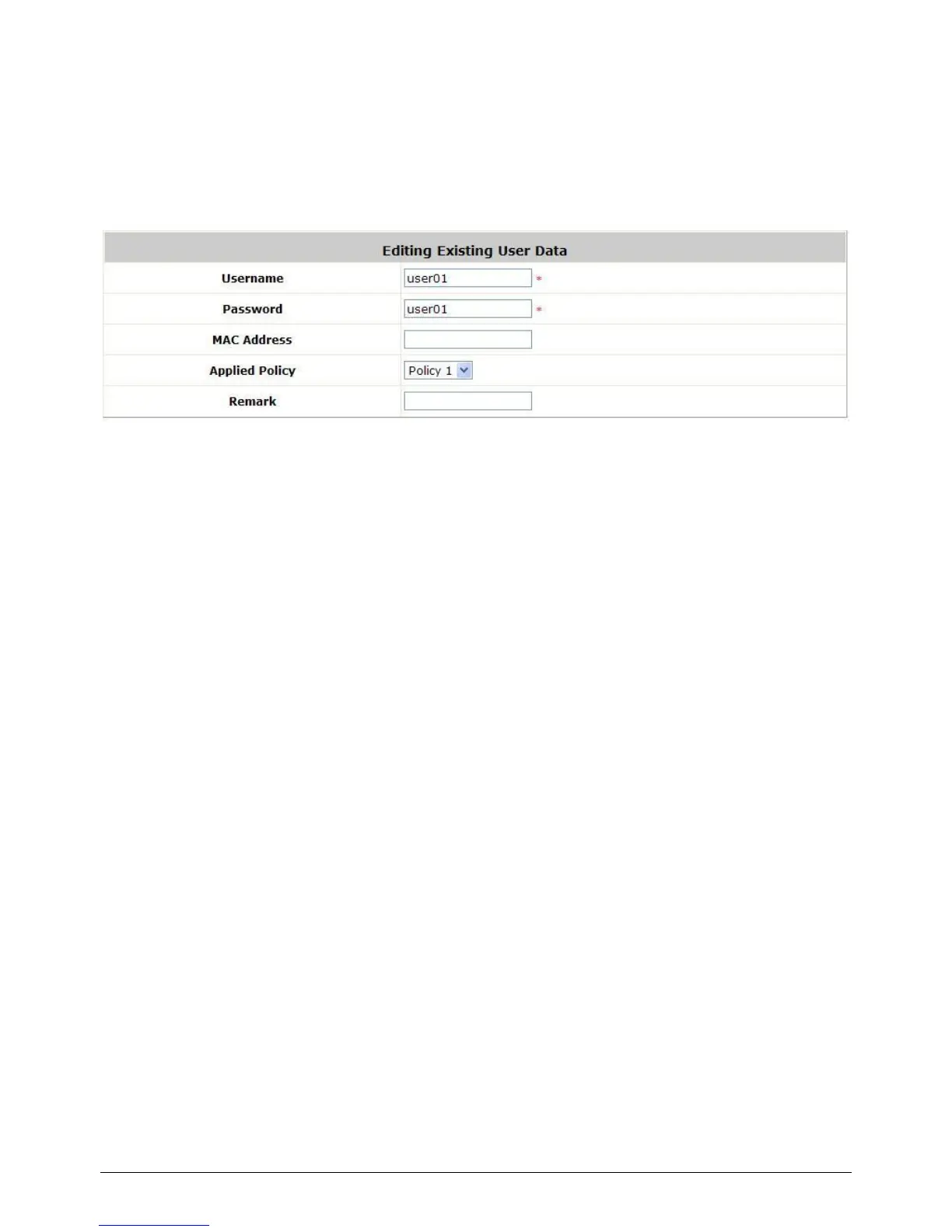 user, and then modify or add any desired information such as Username, Password, MAC