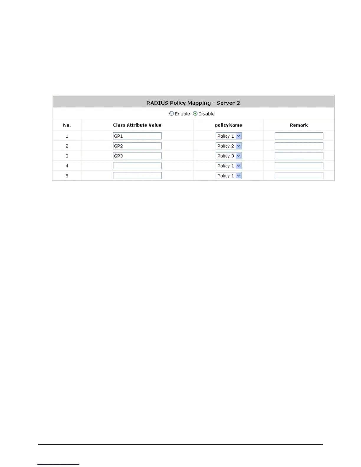 Class-Policy Mapping: This function is to assign a Policy to a RADIUS class attribute sent