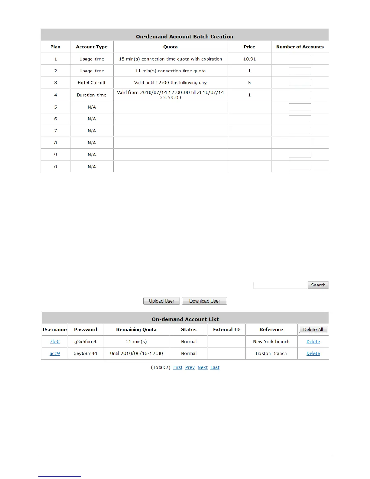 Quota: The total time amount, interval or traffic volume on how On-demand users are allowed