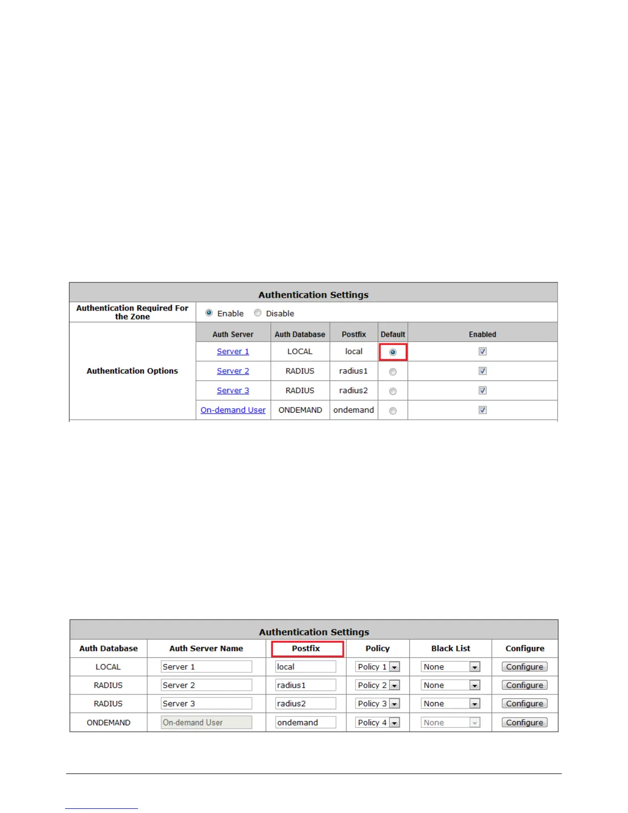 There are different types of authentication database (LOCAL, RADIUS and ONDEMAND) that are