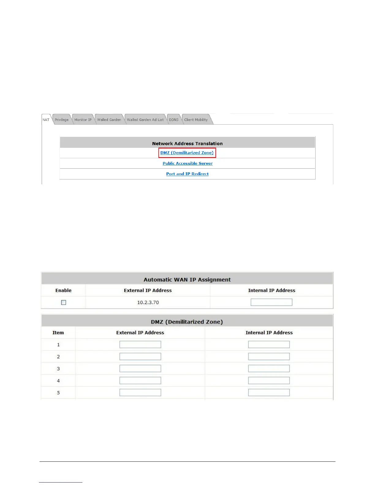External IP Address as a set. After the setup, accessing the External IP address listed in DMZ will be