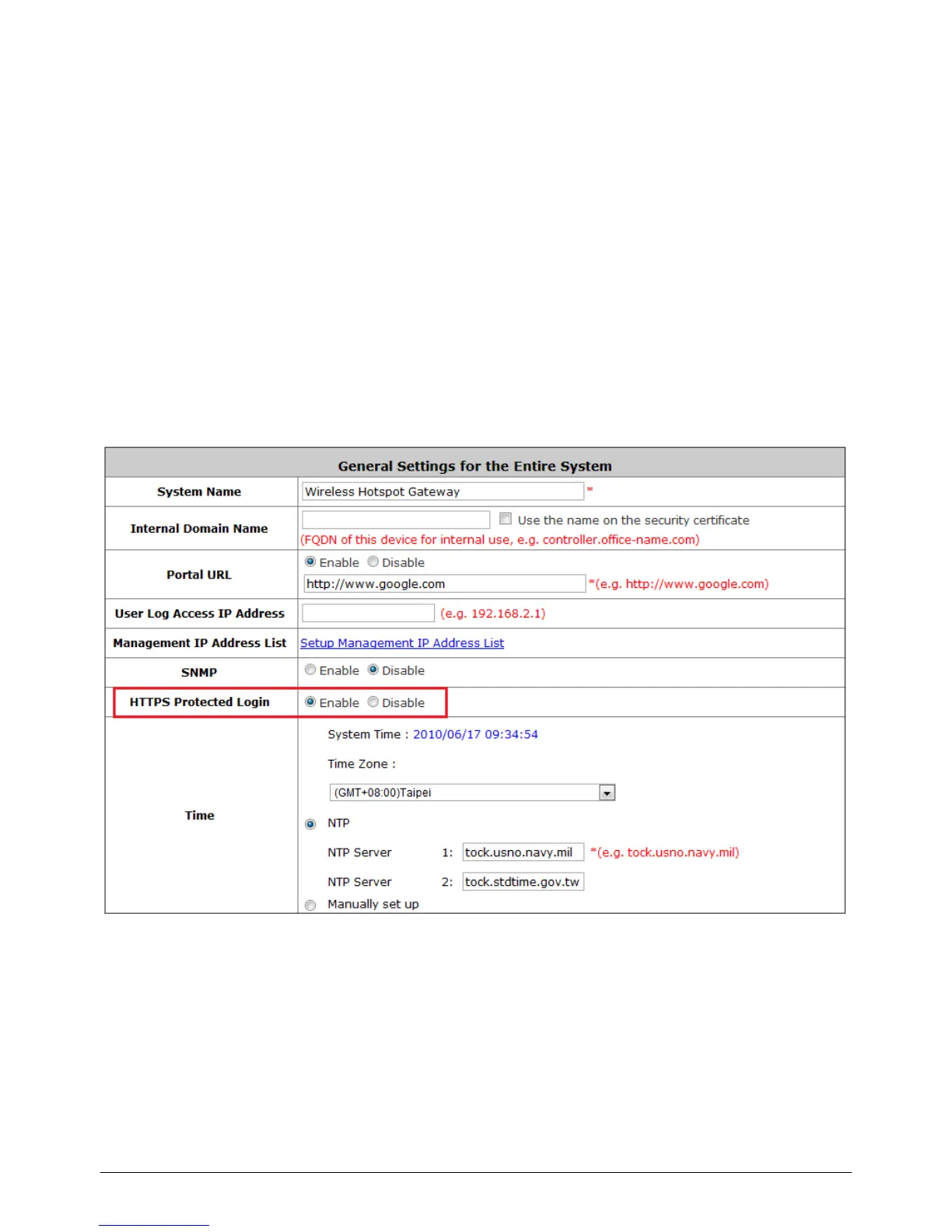 HTTP Protected Login function will let the client‟s login with https for more security. Enable to